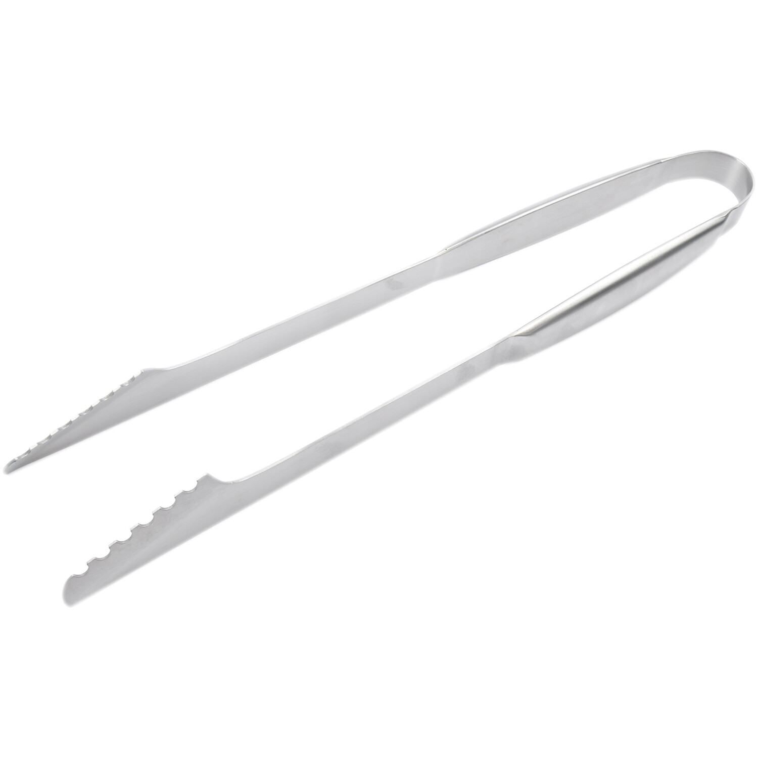 Handle food with safety and care while grilling by using the Stainless Steel BBQ Tongs. With a sleek stainless steel design, these tongs will look great as you cook and dish up your burgers, sausages, chicken, and more. The handle is designed to be heat-resistant to make these tongs extra safe.