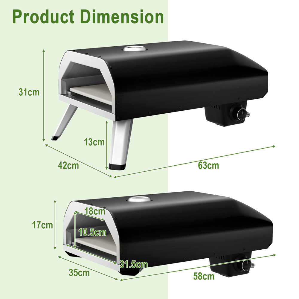 Ignite your passion for outdoor cooking with the Costway Black Stainless Steel Pizza Maker. This robust culinary companion is sure to elevate your backyard or outdoor gatherings to a new level of deliciousness. Crafted from durable 430 stainless steel, this pizza oven not only withstands the elements but also provides consistent heating, ensuring your pizzas and other dishes are cooked to perfection. With a remarkable 15000 BTU output, it heats up to a maximum of 752 degrees Fahrenheit, allowing you to whip up a mouth-watering pizza in just one minute. Its foldable legs make storage and transportation a breeze, and with a full set of accessories including a pizza cutter, peel, and storage bag, you're equipped to start your gastronomic adventure right away.