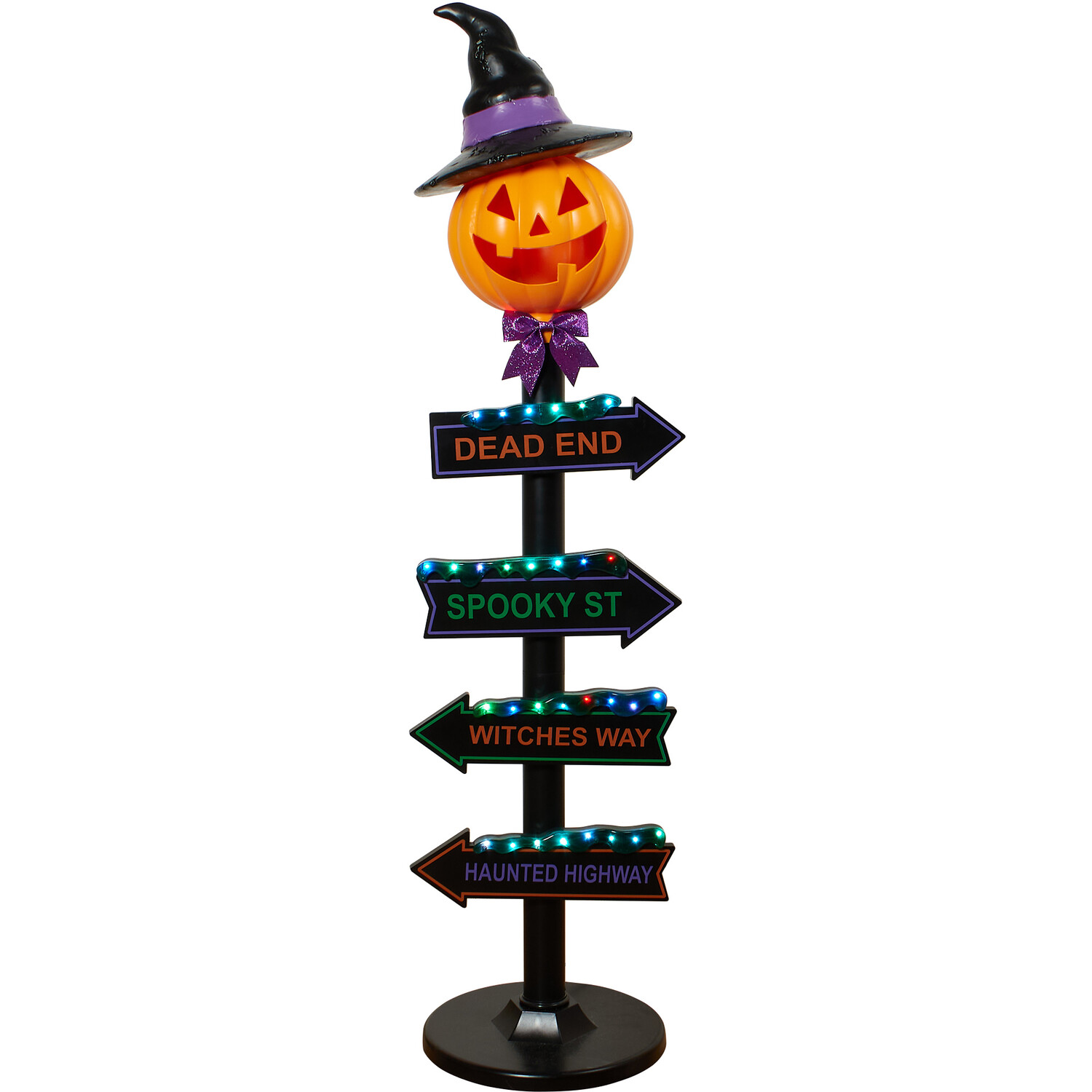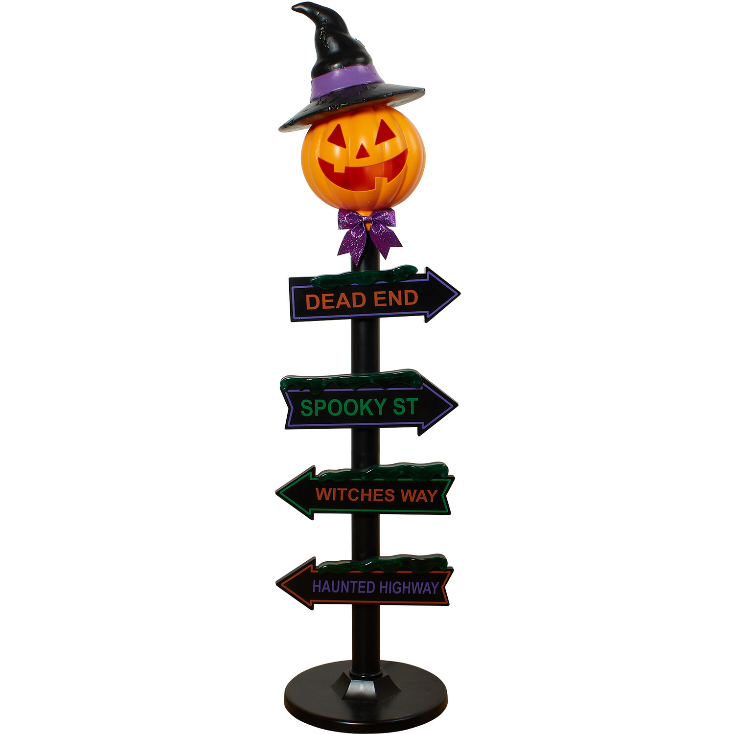 Lead the way this Halloween with this Standing Halloween LED Sign. It's the perfect addition to give a scare factor to your guests or trick-or-treaters. The sign includes fun Halloween-themed place names, such as 'Dead End' and 'Haunted Highway', to set the mood and lights to help guide the way in the dark with the LED lights embedded in the sign. Which way will you choose to go?