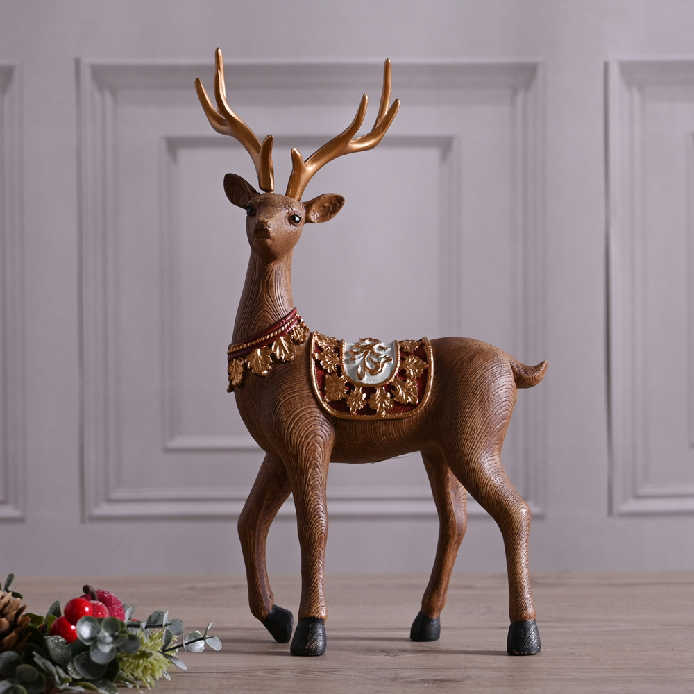 Create cherished memories this holiday season with The Christmas Gift Co Standing Reindeer Christmas Decoration. This traditional standing reindeer decoration is perfect for your Christmas celebrations, blending traditional and modern touches this festive season. It features a wood effect finish that gives it a rustic look. Made from resin, this reindeer features a lovely hand-painted finish that adds charm to your festive decor. It is topped with smooth gold antlers, making it even more special and eye-catching. It fits seamlessly with any festive theme while also being a thoughtful and gift-worthy piece, adding a touch of beauty wherever it is placed.