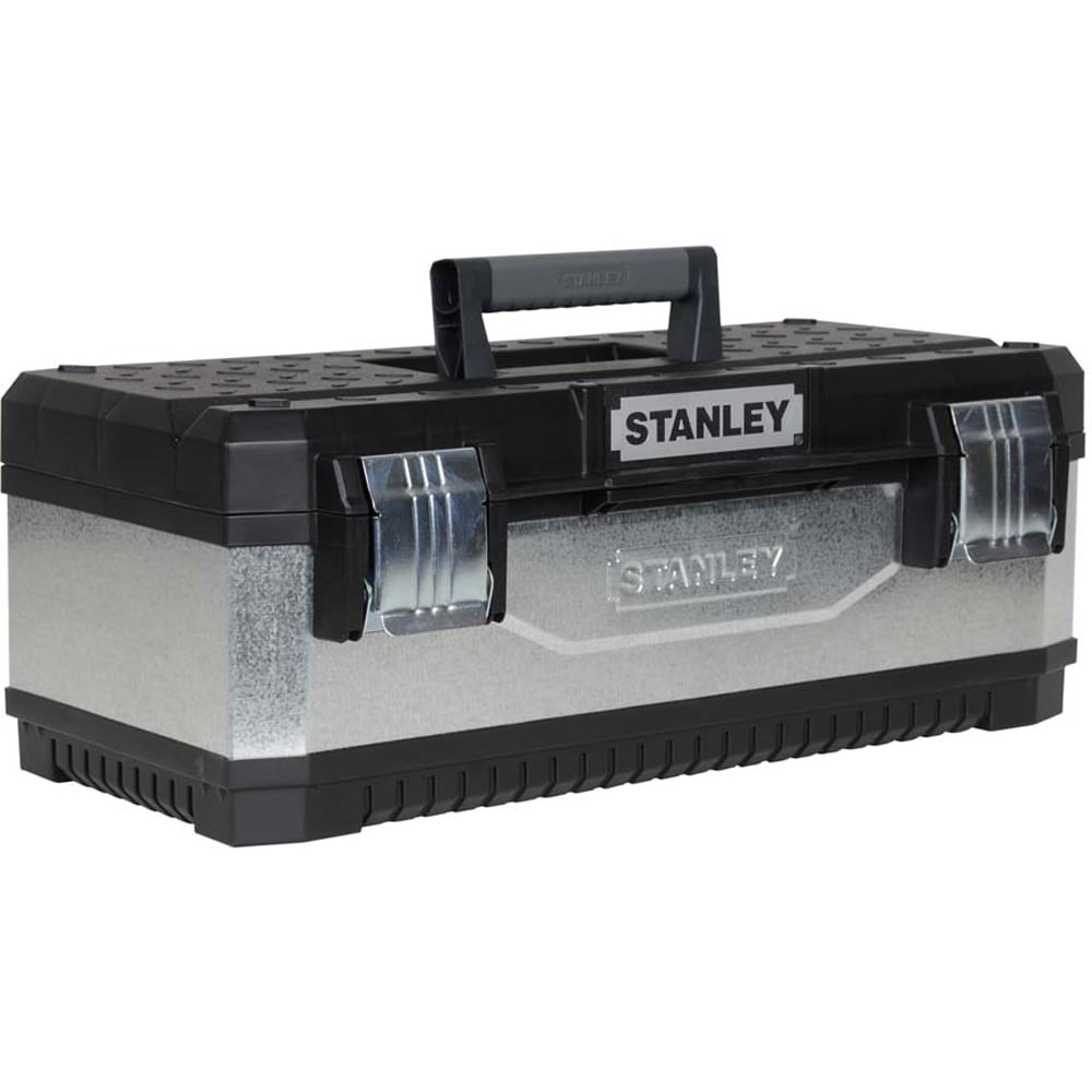These heavy-duty toolboxes are perfect for use at worksites, in garages, or around the home. They feature a galvanised finish that provides a sturdy, durable construction and helps resist rust. The toolboxes are equipped with two heavy-duty metal latches for added security. Inside, you'll find a removable plastic tray, which is great for organising smaller tools like screwdrivers and spanners, as well as tapes and fixings, allowing you to find items at a glance. The lid has a honeycomb design to enhance its strength and durability. Additionally, the soft grip handle folds flat into the lid when not in use, making it more convenient to store. An added feature of the lid is a saw groove, which is handy for holding pipes and timber in place while cutting, especially when there is no workbench available.