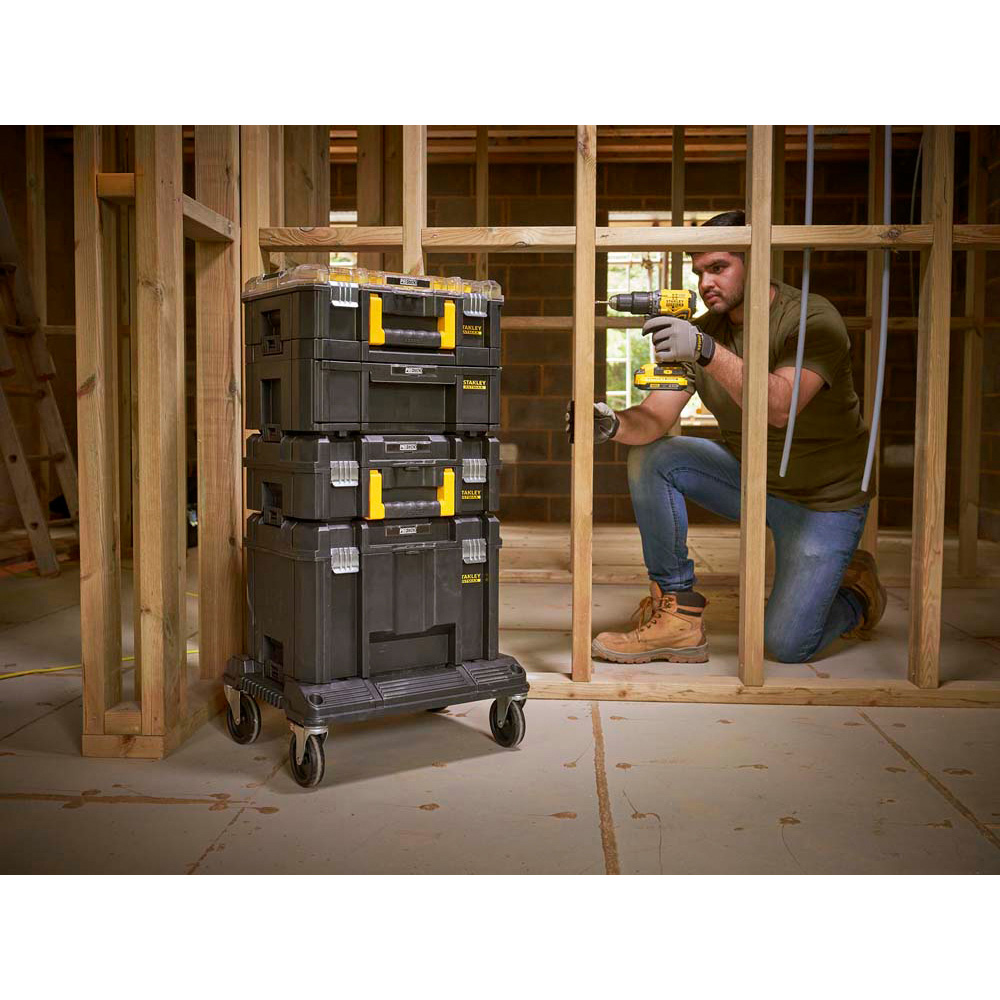 The STANLEY FatMax PRO-STACK 8482 Tower contains the following: 1 x STANLEY FatMax PRO-STACK8482; Organiser with 10 removable cups and a strong, transparent, polycarbonate lid which provides clear and un-obstructed visibility of contents. Ideal for storing small parts, components and accessories. Complete with anti-rust metal latches for durability and a carry handle for easy transportation. It which enables you to customise your tool storage to fit your power tools and accessories. Complete with anti-rust metal latches for durability, a padlock eye for security and two carry handles for easy transportation. 1 x STANLEY FatMax PRO-STACK Deep Box. Ideal for storing larger power tools and also features an integral, removable storage tray for hand tools and smaller items.