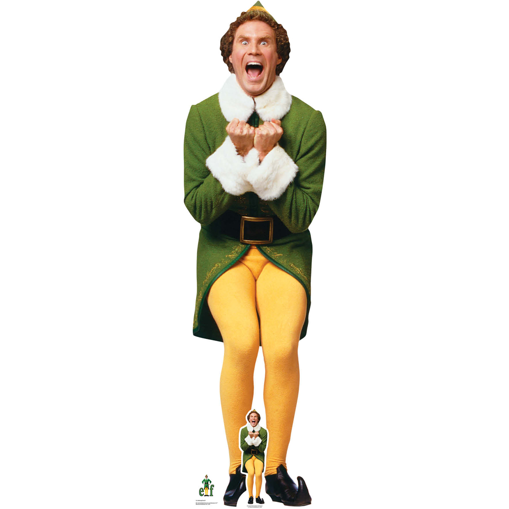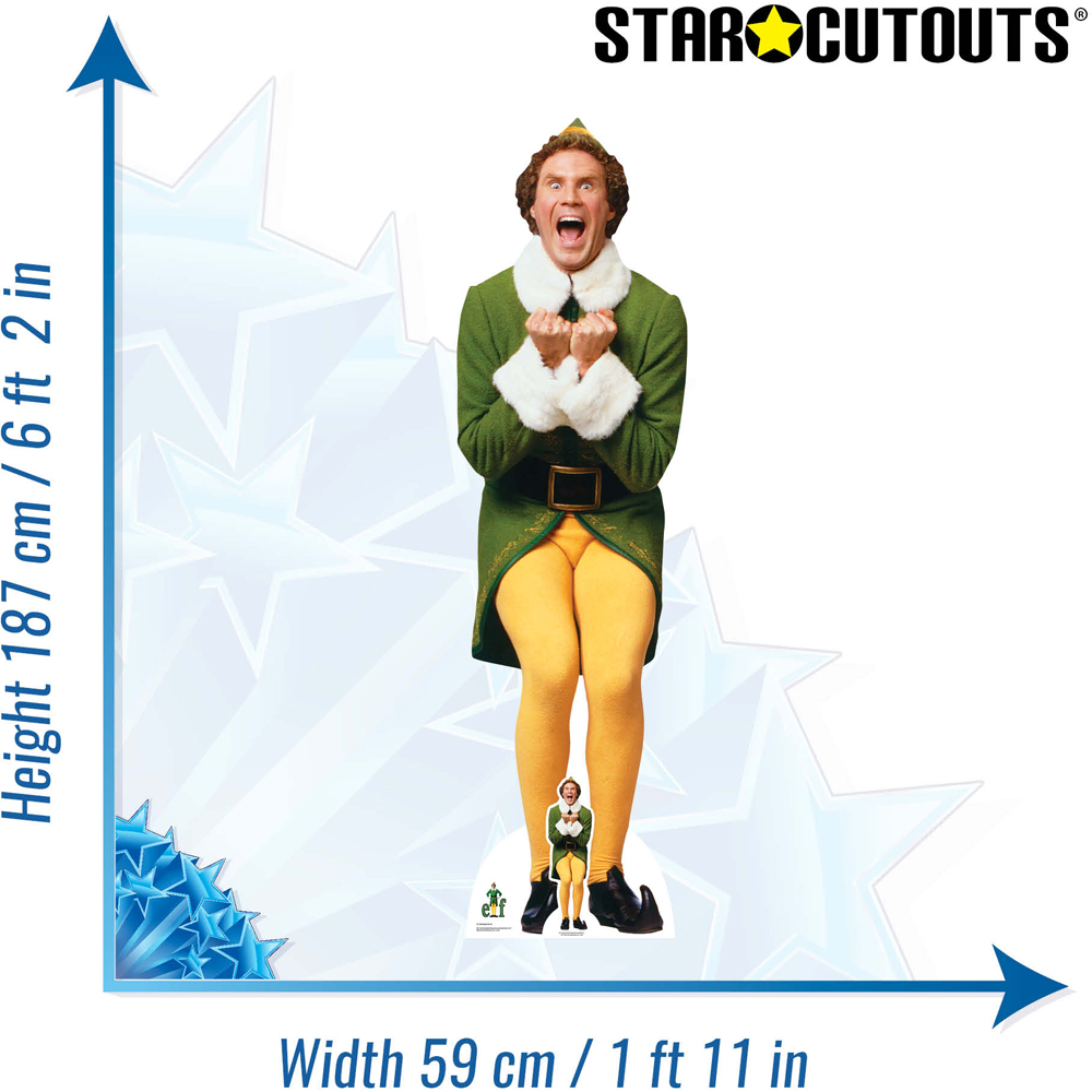 Invite your favourite stars to your house parties with the Star Cutouts Buddy Elf Excited For Christmas Cardboard Cutout 6.2ft. This cutout features Buddy, a character from the iconic movie Elf, excited for Christmas. This cutout is an ideal festive decoration for holiday parties or family gatherings. It is 6.2ft tall and 1.11ft wide, adding a nostalgic glimmer to your Christmas decorations. The cutout has a vibrant design and sturdy build, making it a cheerful addition to your themed events. This cutout comes with a tabletop cutout. The cutout features an easel on the back for a standalone display.