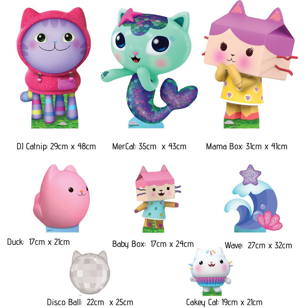 Bring Gabby's Dollhouse magic to any celebration as DJ Catnip, Baby Box and MerCat spring to life in this vibrant cardboard cutout multi pack, perfect for parties and interactive play. Bursting with colour and character, each piece assembles in seconds so you'll have an enchanting display in no time. Crafted from sturdy FSC cardboard and printed with vivid inks, they're ideal for Gabby's Dollhouse fans, whether for a birthday, themed event or imaginative play at home.