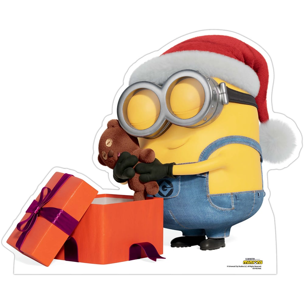 Invite your favourite stars to your house parties with the Star Cutouts Minion Bob Xmas Cardboard Cutout 2.4ft. This cutout features Minion Bob, a character from Despicable Me, admiring his Christmas present. This cutout is an ideal festive decoration for holiday parties or family gatherings. It is 71cm tall and 87cm wide, adding a nostalgic glimmer to your Christmas decorations. The cutout has a vibrant design and sturdy build, making it a cheerful addition to your themed events. This cutout comes with a tabletop cutout. The cutout features an easel on the back for a standalone display.