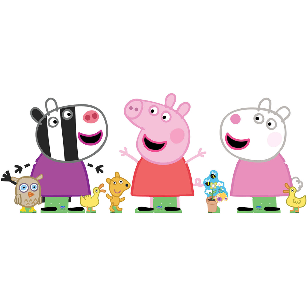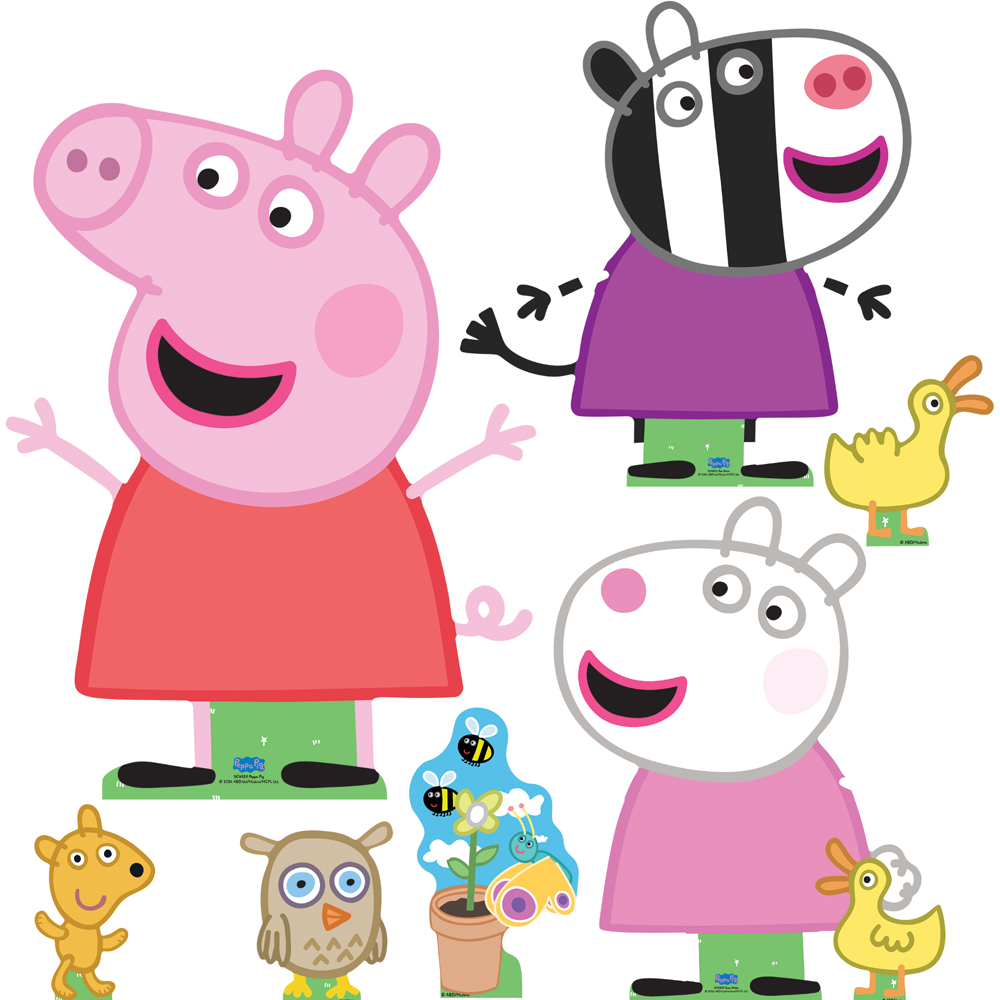 Peppa, Zoe and Suzy Cardboard Cutout Decoration Multi Pack Perfect for Peppa Pig Fans! Add a sprinkle of Peppa Pig magic to your next party, birthday, or special event with this cheerful multi-pack of cardboard cutouts. Featuring Peppa Pig, Zoe Zebra, and Suzy Sheep, along with adorable table-top decorations, this set guarantees smiles all around and a memorable celebration. Features: Craft and Create: Each cutout takes approximately 10 minutes to assemble, making it a fun activity for all ages. Vibrant and Colourful: Perfectly designed to brighten up any Peppa Pig-themed event. Contents: Three Large Cardboard Cutouts: Peppa Pig: 62 cm tall x 44 cm wide Zoe Zebra: 59 cm tall x 55 cm wide Suzy Sheep: 59 cm tall x 48 cm wide Five Delightful Table-Tops: Owl: 20 cm tall x 17 cm wide Teddy: 21 cm tall x 12 cm wide Butterfly, Bee, and Flower: 22 cm tall x 13 cm wide Duck 1: 15 cm tall x 14 cm wide Duck 2: 15 cm tall x 12 cm wide This crafting and decoration pack is the ultimate way to make your Peppa Pig-themed celebration extra special!