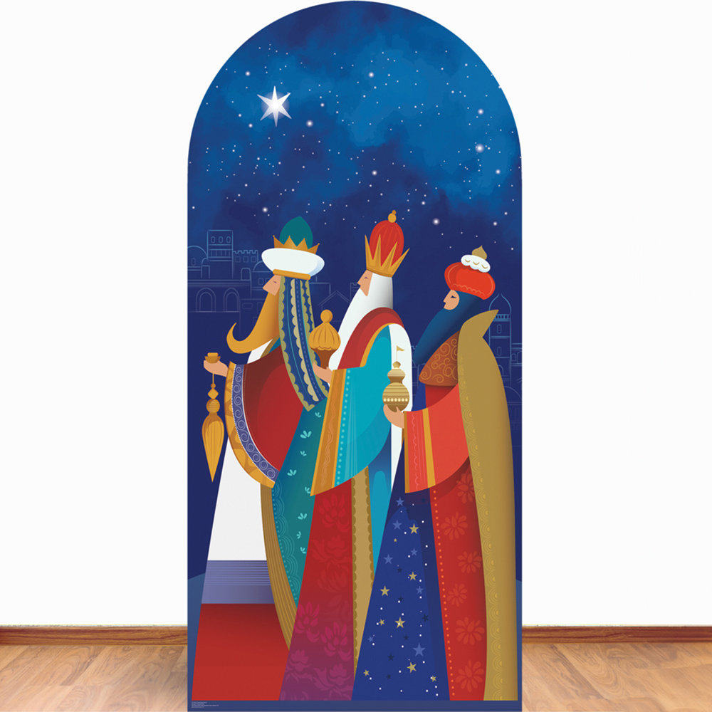 Brighten up your Christmas with the Star Cutouts Three Kings With Gifts Christmas Cardboard Cutout 6.4ft. measuring 6.4 x 3ft, this Christmas nutcracker doll cardboard cutout brings a magical touch to any setting. Ideal for homes, birthdays, parties, and special events, this realistic image cutout brightens up your space and delights your guests. It comes with an easel on the back, making it simple to display anywhere in your home. Plus, it features a vibrant, high-quality print on sturdy cardboard, ensuring it looks great throughout the festive season. Assembling it takes just a few minutes, so you can start enjoying your Christmas decorations right away. The vibrant colours and cheerful design will brighten your holiday spirit.