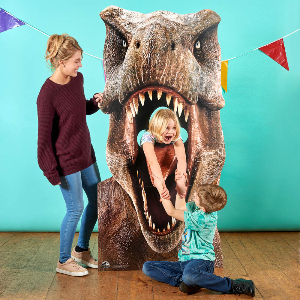 Experience the thrilling Jurassic adventure with the Star Cutouts Tyrannosaurus Rex T-Rex Dinosaur Stand-In Cardboard Cutout 6.2ft. This authentic cutout features a dangerous T-Rex dinosaur with a wide open mouth and cold, sharp eyes. The children can enjoy the fantasies and add a fun element to themed parties, birthdays and festive occasions with this cutout. This stand-in cutout provides the ideal photo opportunity for the little enthusiasts. It is crafted using durable cardboard with single-sided high-quality print. This lightweight cutout is highly portable with an easel on the back for standalone display. It is easy to assemble for instant enjoyment. Dimensions: 6.2 x 3.1ft.