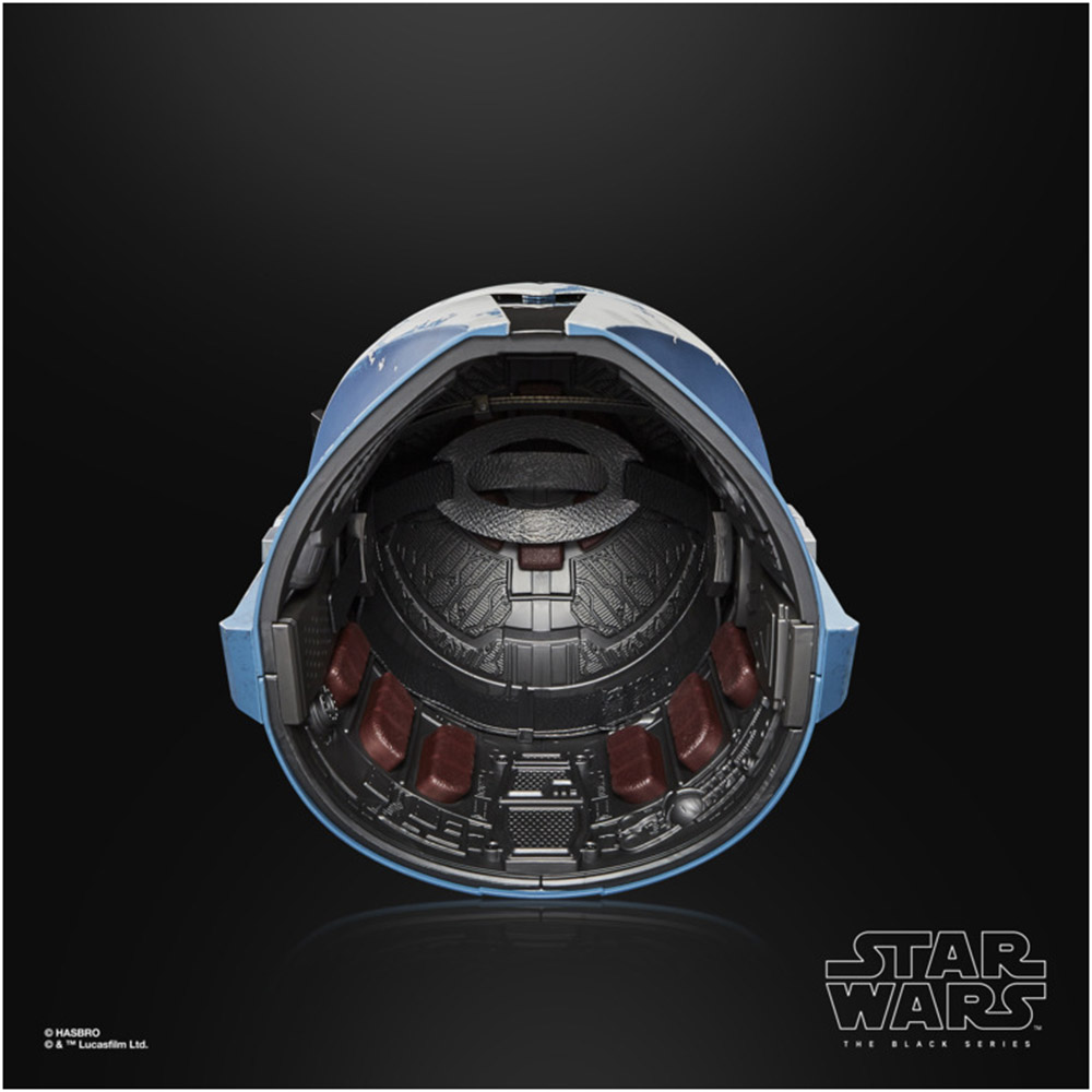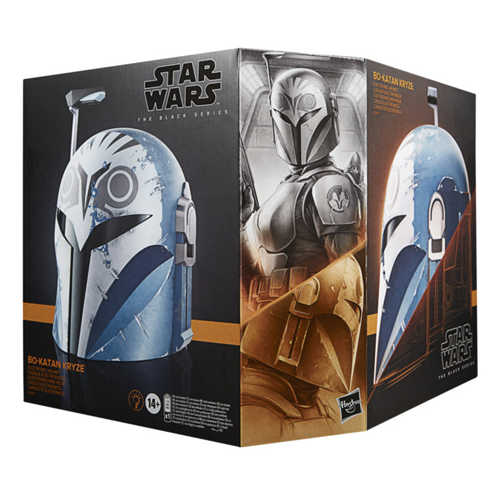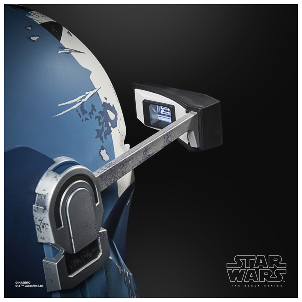 The Black Series Bo-Katan Helmet, featuring highly detailed deco, series-inspired design, adjustable fit, interior padding, and electronic lights, is an iconic addition to any Star Wars fan’s collection. With the press of a button, the rangefinder drops down, activating the red LED that flashes. White LEDs illuminate the heads-up display. Look out for other premium roleplay items and figures from Star Wars The Black Series (Each sold separately. Subject to availability.).