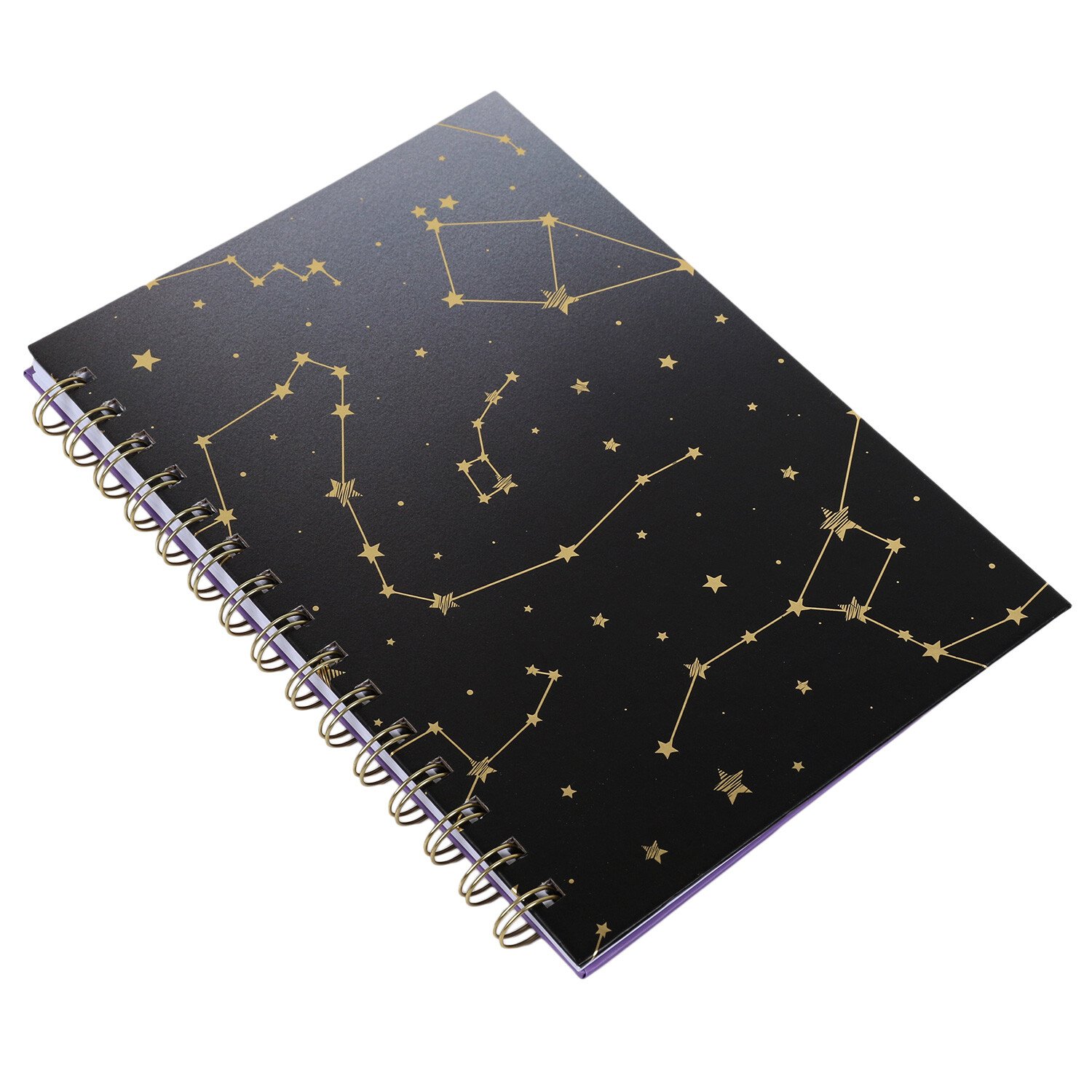 Perfect for jotting down notes, lists, ideas and more, this stunning Stargazer A5 Spiral Notebook is a compact and stylish stationery solution. Coming in an assortment of either black or purple, this notebook is embellished with a stunning gold foil constellation design. The small design makes this notebook great for school, work or on the go.