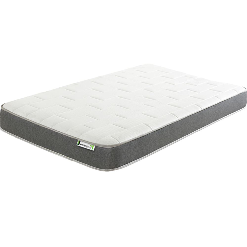 This Starlight Beds Deep Double Grey Big Brick Memory Foam and Spring Mattress has been carefully constructed with a European-engineered Bonnell open coil spring unit to allow the weight of the sleeper to be distributed evenly across a wide surface providing a much more comfortable and medium soft feel. Allowing the sleeper to wake up each day feeling relaxed and revitalised. The fabric of the mattress has been designed to be breathable with hypoallergenic and anti-dust mite fillings for a cleaner healthier sleeping environment. This will keep your mattress odour-free. With new in-house technology your mattress will come vacuum-packed, rolled-boxed, making it much more environmentally friendly.
