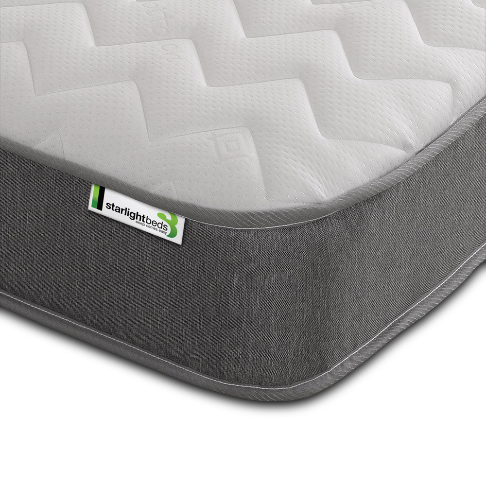 This Starlight Beds Shorty Grey Zig Zag Hybrid Memory Foam and Open Coil Spring Mattress combines both memory foam and a traditional 13.5 gauge open coil spring unit, helping reduce pressure points for increased comfort. Covered in a cool touch material for a softer sleeping surface and stylishly finished with a grey border. With innovative technology, we are now able to source materials to help protect the environment. Memory foam adapts and conforms to the body and evenly distributes the weight across the surface. The main benefit of memory foam is to provide support and comfort by contouring the body which can help reduce pressure points and promote better spinal alignment. The Coil spring provides good even support across the entire surface. This component has been used for generations due to its longevity, providing a longer durability life. Combined with memory foam for a great night's sleep.
