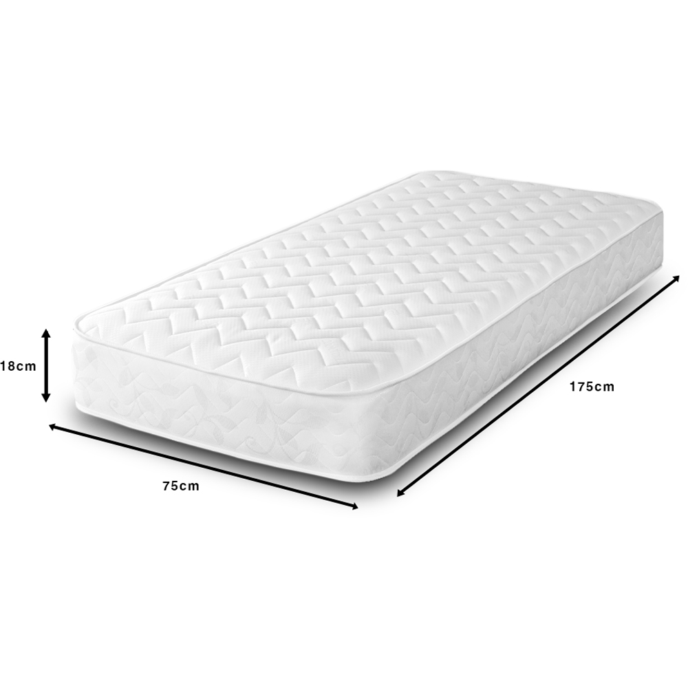 This Starlight Beds Shorty White Zig Zag Hybrid Memory Foam and Spring Mattress combines both memory foam and a traditional 13.5 gauge open coil spring unit, helping reduce pressure points for increased comfort. Covered in a cool touch material for a softer sleeping surface and stylishly finished with a white border. With innovative technology, we are now able to source materials to help protect the environment. Memory foam adapts and conforms to the body and evenly distributes the weight across the surface. The main benefit of memory foam is to provide support and comfort by contouring the body which can help reduce pressure points and promote better spinal alignment. The coil spring provides good even support across the entire surface. This component has been used for generations due to its longevity, providing a longer durability life. Combined with memory foam for a great night's sleep.