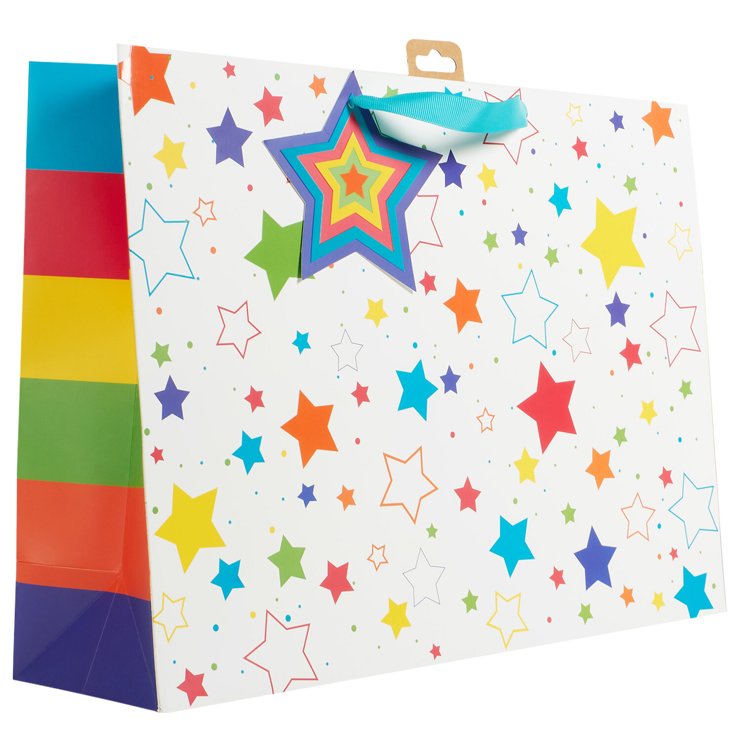 Make gift-giving effortless with this Starry XL Shopper Gift Bag. Featuring a stunning starry design on a white backdrop, this bag is perfect for larger presents or multiple smaller gifts. Ideal for any occasion, this bag is sure to add a special touch to your gifts.