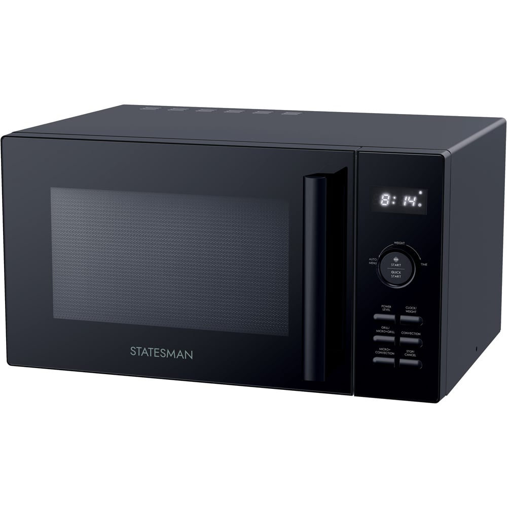 Finished in cool black, this 900W Digital Combination Microwave from Statesman has all the features you’d expect from a microwave, with the added benefit of 1250W grill functionality and 2200W of convection oven power. The 30L capacity is ideal for families and is large enough to cook a range of different meals, while the stainless-steel coating makes the cooking process as efficient as possible. Quickly and safely thaw meals when you’re in a hurry using the defrost function; simply input the weight of the food and the microwave will remind you when it’s time to turn the food over for an even defrost. Cook a large variety of dishes in no time using the 10 auto cooking programs, including spaghetti, pizza, potatoes and chicken, or use the grill function for the perfect toasted sandwich, cheesy lasagne, or succulent grilled vegetables. This microwave also has the power of convection oven cooking, allowing you to bake and roast meals just as you would in a traditional oven with a temperature range of up to 200 degrees. Rustle up crispy potatoes, pasta bakes, cakes, and even fluffy warm bread with ease, perfect for busy families and entertaining.