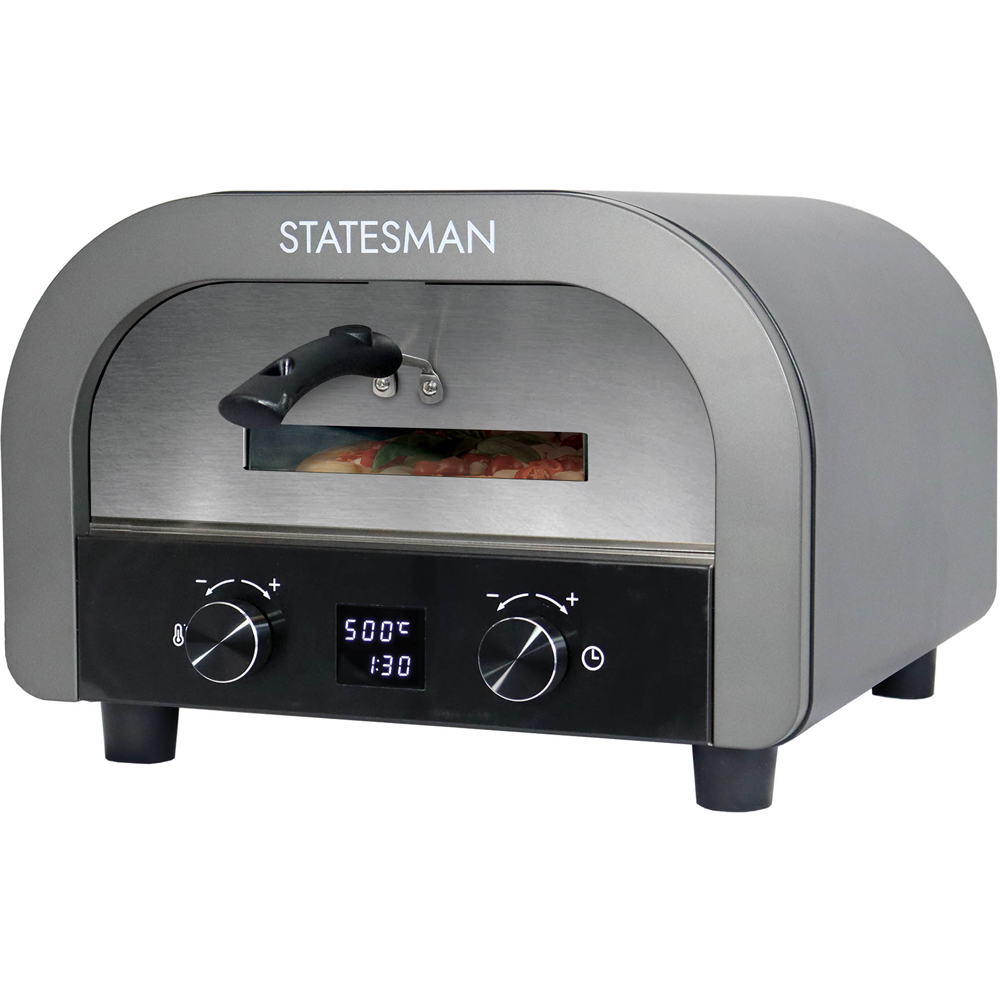 Introducing the Statesman SKPO0E13B Silver 13-inch Electric Pizza Oven, your gateway to pizza perfection. Crafted for culinary perfection, this electric oven is designed to create perfectly crispy crusts. With a robust 1800 watts of power, this oven delivers consistent and reliable performance, while the temperature control and built-in timer allow for customisable cooking. Featuring a 13-inch pizza stone, this oven ensures ample space for crafting your favourite pizzas. Effortlessly portable, the oven comes with a convenient door and sturdy carry handle. The integrated chimney guarantees even heat distribution for consistent cooking results every time.