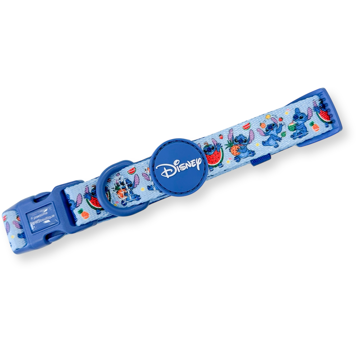 Add style to your pet's daily adventures with the Stitch Fruit Collar. Flaunting playful prints of Stitch and fully adjustable, this collar is designed for style and comfort. It comes with a matching neoprene lining for a soft, cushioned feel against your dog's neck. Whether daily strolls or special outings, the collar will effortlessly add a pop of personality to your dog!