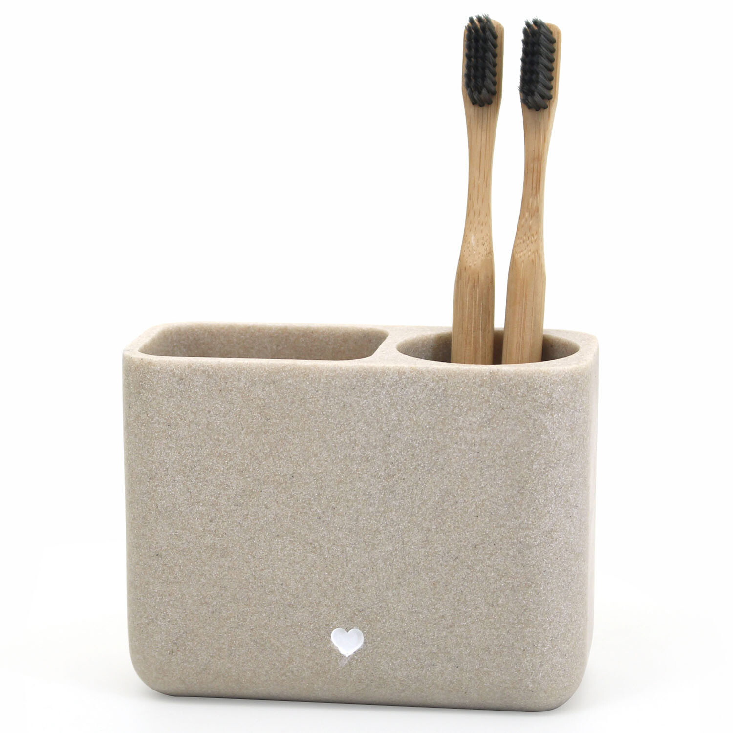 Keep your bathroom stylish and organised with this Stone Heart Tooth Brush Holder. Suitable for holding multiple toothbrushes, this holder features a sleek, compact design that easily fits on your countertop. With two sections, it is ideal for maintaining a clutter-free bathroom setup and keeping essentials at hand.