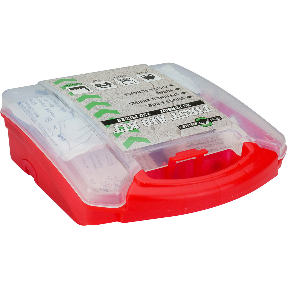 Ensure peace of mind in any setting with the StoneBreaker Multi Person First Aid Kit, designed to cater to twenty-five people and boasting a comprehensive 130-piece set. From the workplace to the great outdoors, this kit is packed with all the essentials including plasters, a CPR barrier valve, an instant cold pack, and more, all housed in a robust heavy-duty plastic case. It’s an indispensable safety tool for any group setting, ensuring you're prepared for any minor emergency.