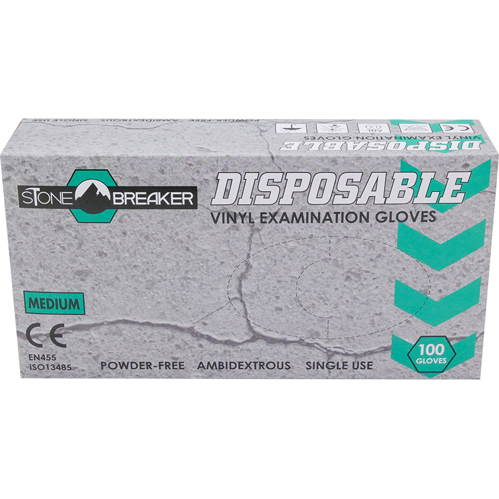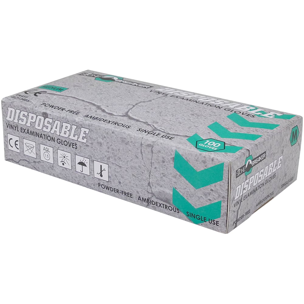 Ensure cleanliness and safety with StoneBreaker Disposable Vinyl Gloves, conveniently supplied in boxes of 100. These ambidextrous gloves can be worn on either hand, making them a versatile choice for a range of tasks. Designed for single use, they're powder-free, reducing the risk of contamination and allergic reactions during sensitive operations.