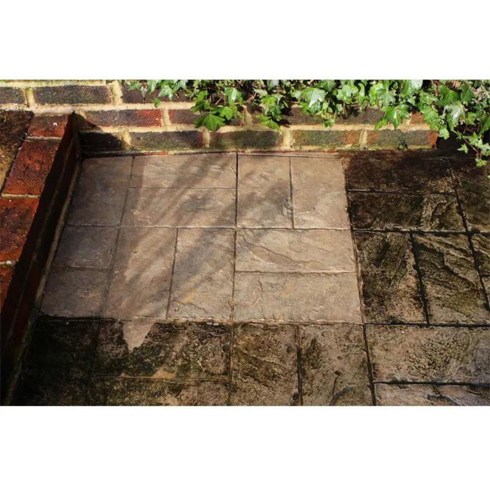 Eradicates black spots from patios, paving and paths with the StoneCare4U Essential Black Spot Remover. It is specially formulated to remove stubborn black spots from natural stone and other outdoor stone and masonry surfaces. For best results, apply, agitate and leave for around two to three hours before rinsing off. It will quickly remove layers of dirt and grime as well as green algae, lichen and long-standing black spot deposits within two to four hours. Unlike acid-based cleaners, alkaline-based cleaners will not damage or etch the surface of the stone. How To Apply: Before use, remove any loose debris from the surface area and ensure you have adequate safety wear i.e. gloves, suitable protective eyewear, face mask and clothing. The black spot remover is to be used neat or diluted 1:1 with clean water – always perform a small test area to determine a suitable dilution rate and dwell time. Carefully transfer the cleaning fluid from the bottle to a pump sprayer or watering can. In contrast, if these containers are not available, then the cleaning fluid can be used directly from the bucket. The cleaning fluid needs to be left on the surface for at least two hours. During that time, the surface must not be allowed to dry out. If necessary, mist it with additional cleaning fluid or clean water to prevent it from drying. Work the area(s) of staining with a brush, if necessary, but ensure the surface remains wet at all times. Leave to dwell, and after two to four hours of dwell time, the treated area should be washed down with clean water first to neutralise the cleaner before, then power washing off for perfect results. Please Note: The cleaning fluid can harm or possibly kill vegetation, so try to avoid washing off garden or lawn grass. If this is unavoidable, then rinse with plenty of clean water to dilute the cleaner. In areas of heavy soiling and extreme, stubborn black spots, it may be necessary to extend the dwell time to up to eight hours or overnight, where necessary, before power washing off. To achieve perfect results on aged, stubborn black or white lichen spots, test a small area to ascertain the required dwell time necessary to remove the marks – then follow the instructions above. Two to three applications may be needed. Please Note: It contains a chlorine-type agent as an active ingredient and will stain fabrics and sensitive materials. Take special care to avoid contact with fabrics and tarmac during application. Furthermore, the fluid might cause slight lightening of some surfaces – always try the product on-site in an inconspicuous area before use. Coverage: Up to 50m² per 5L when diluted 1:1. Coverage varies depending on surface contamination. Quantity: 5L. Pack of three.