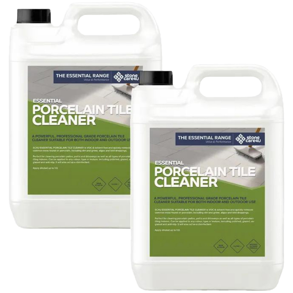 Say goodbye to tough stains and buildup with this StoneCare4U Essential Porcelain Tile Cleaner. This powerful, professional-grade porcelain tile cleaner is suitable for both indoor and outdoor use. It has a VOC and solvent-free formula that quickly removes common mess found on porcelain, including dirt and grime, algae and bird droppings. Ideal for cleaning porcelain patios, paths and driveways, this cleaner can be used on all types of porcelain tiling indoors. Also, it can be applied to any colour, type or texture, including polished, glazed, un-glazed and anti-slip. Plus, the cleaner does not only clean surfaces but also disinfects them. Directions for use: Before use, remove any loose debris from the work surface and ensure you have adequate personal protection, i.e. gloves, suitable protective eyewear, FFP3 class mask and clothing. For outdoor use: Dilute the concentrate at 1:3 with clean water (1 litre of concentrate to 3 litres of water). Test for suitability in a small inconspicuous area. Apply with a sprayer or watering can. Rinse off after 30 minutes or for heavier contamination, pressure wash if necessary. For indoor use: Apply with a mop, sponge or brush. Allow to dwell for 15-30 minutes and agitate the surface with a stiff broom or brush. Rinse off with clean water and clean up excess using a mop or sponge. Please Note: The cleaner is not suitable for use with or around acid-sensitive surfaces including enamel, zinc, chrome, stainless steel, polished marble and limestone. Always protect these areas and test in an inconspicuous area on-site to determine suitability for the intended use. Take care to avoid contact with fabrics during application. Coverage: Cleans up to 8m² per 1L when diluted 1:1. The coverage varies depending on porosity and level of surface contamination. Usage guidelines: Dwell time: 15 to 30 minutes. Applications/Coats: 1 application. Application Method: Sprayer/Brush/Mop/Sponge. Dilution: Up to 1:3. Size: 5L. Pack of two.
