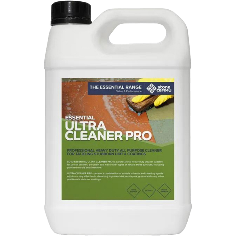 Tackle tough dirt and coatings on various surfaces effortlessly using the StoneCare4U Ultra Cleaner Pro 2.5L. Ideal for use on ceramic, porcelain, and natural stone like marble and limestone, this professional-grade cleaner contains potent solvents and cleaning agents that effectively dissolve stubborn stains, wax layers, and grease. With coverage of up to 25m2 per litre, the dilution rate will determine the actual coverage area when using Essential Ultra Cleaner Pro. Warning: Keep out of the reach of children and pets. How to apply: Before use, remove any loose debris from the work surface and ensure you have adequate safety wear, i.e. gloves, suitable protective eyewear, face mask and clothing. Certainly, we advise performing a small test application in an inconspicuous area on-site before use. This will indicate the suitability and effectiveness of the product for your surface. If unsuitable for your requirements, do not proceed but contact us to return the product. Depending on the stained or soiled area, Ultra Cleaner Pro can be used neat for removing waxes/coatings or diluted up to 10 parts water to 1 part for heavily soiled areas. Wet the area with clean water before applying the cleaner to the soiled area. Allow the cleaner to dwell for approximately 15 to 20 minutes, not allowing it to dry on the surface. After 15 to 20 minutes agitate with a stiff brush and clean water, scrub and rinse thoroughly with clean water. In cases of heavy soiling or staining, repeat the process increasing the amount of cleaner if necessary.