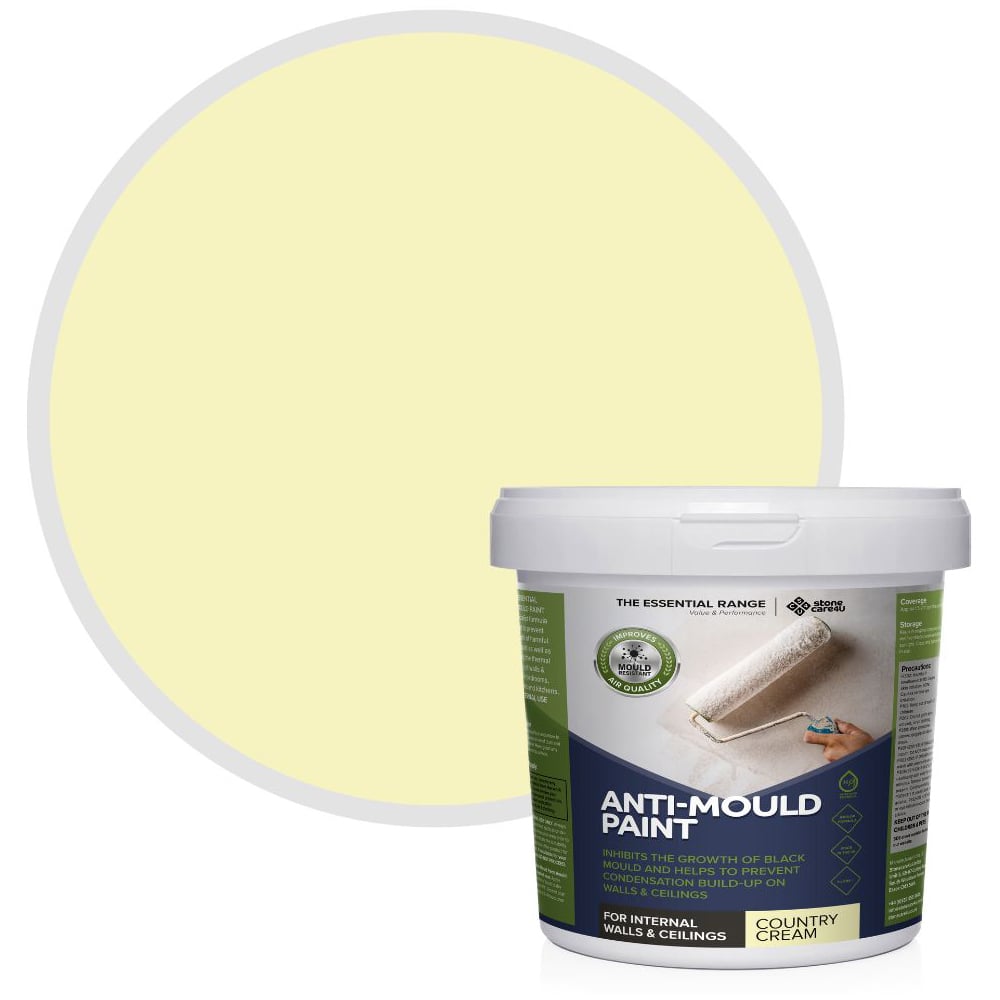 Defend walls against mould and moisture with this StoneCare4U Essential Walls & Ceilings Country Cream Matt Anti Mould Paint. This heat-amended acrylic copolymer emulsion paint is suitable for internal use on walls and ceilings. The paint is ideal for use in places with black spot mould build-up, like kitchens, bathrooms and ceilings. It assists in reducing build-up and helps to inhibit any regrowth of black spot mould. Also, the paint can be used on internal surfaces of cold-facing walls or walls with low insulation levels. The formula contains tiny cenospheres, also known as ‘beads’, which raise the temperature of the surface, and once applied, help in reducing the development of condensation. Plus, an active fungicide is found in the formulation of the paint to prevent the accumulation of mould. Mould can affect human health and be extremely unpleasant appearance-wise. The damaging effect of black spot mould spores can be especially harmful to asthma patients or people with breathing issues. Directions for use: Stir thoroughly prior to use. Apply at least two coats of paint using a brush or roller. If you want to coat dark or strong colours, an additional coat may be required to disguise the original colour. Do not apply at air or surface temperatures below 10 °C or in areas of high humidity. Coverage: Approx 4 to 6m2 per litre per coat. Initial Drying Time: Around one to two hours. Re-coating: After two to four hours. Quantity: 5L.