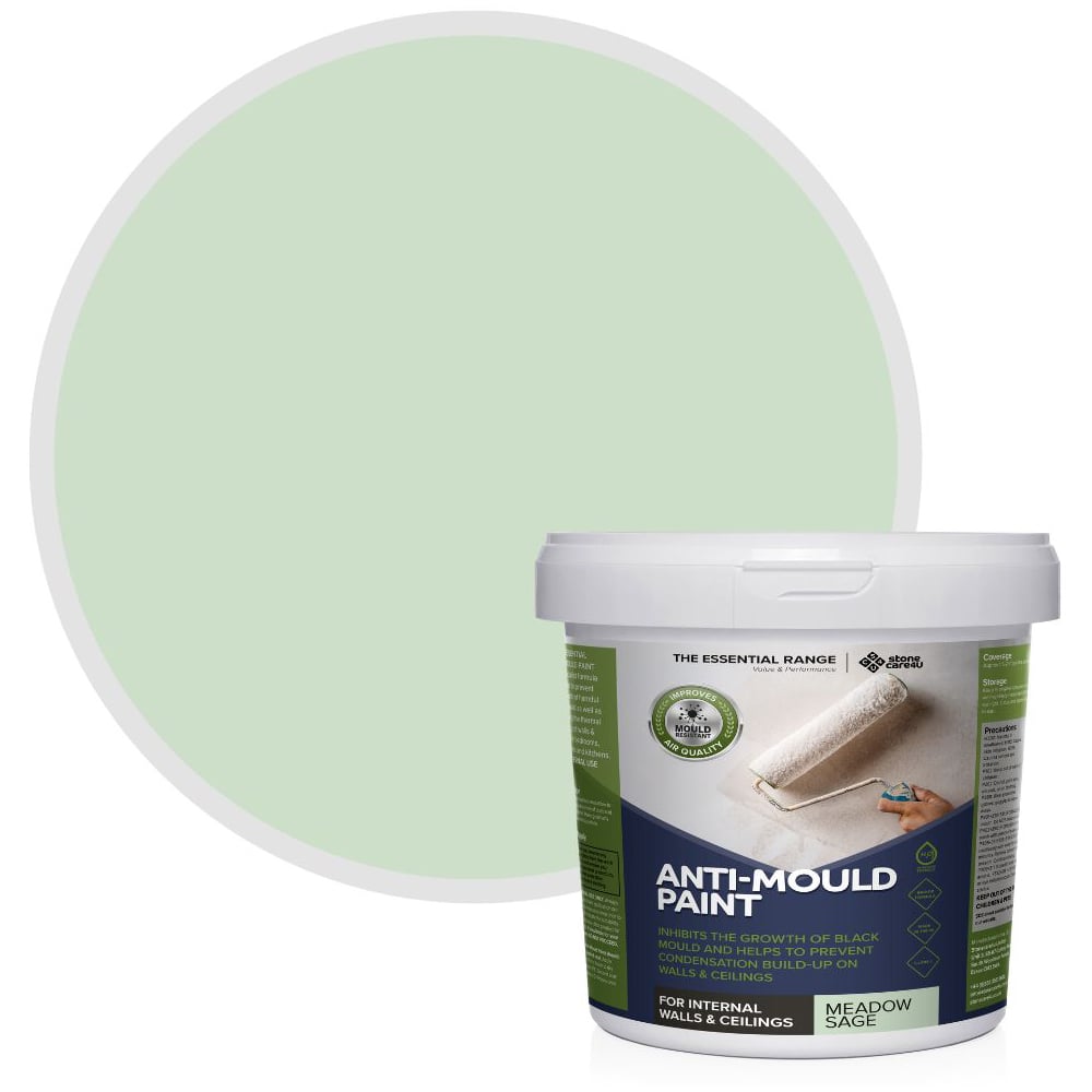 Defend walls against mould and moisture with this StoneCare4U Essential Walls & Ceilings Meadow Sage Matt Anti Mould Paint. This heat-amended acrylic copolymer emulsion paint is suitable for internal use on walls and ceilings. The paint is ideal for use in places with black spot mould build-up, like kitchens, bathrooms and ceilings. It assists in reducing build-up and helps to inhibit any regrowth of black spot mould. Also, the paint can be used on internal surfaces of cold-facing walls or walls with low insulation levels. The formula contains tiny cenospheres, also known as ‘beads’, which raise the temperature of the surface, and once applied, help in reducing the development of condensation. Plus, an active fungicide is found in the formulation of the paint to prevent the accumulation of mould. Mould can affect human health and be extremely unpleasant appearance-wise. The damaging effect of black spot mould spores can be especially harmful to asthma patients or people with breathing issues. Directions for use: Stir thoroughly prior to use. Apply at least two coats of paint using a brush or roller. If you want to coat dark or strong colours, an additional coat may be required to disguise the original colour. Do not apply at air or surface temperatures below 10 °C or in areas of high humidity. Coverage: Approx 4 to 6m2 per litre per coat. Initial Drying Time: Around one to two hours. Re-coating: After two to four hours. Quantity: 5L.