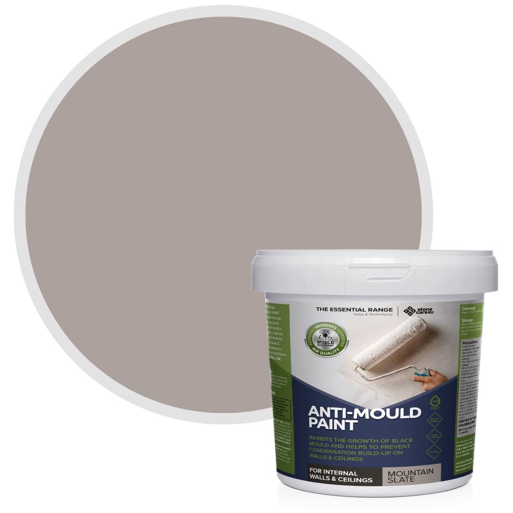 Defend walls against mould and moisture with this StoneCare4U Essential Walls & Ceilings Mountain Slate Matt Anti Mould Paint. This heat-amended acrylic copolymer emulsion paint is suitable for internal use on walls and ceilings. The paint is ideal for use in places with black spot mould build-up, like kitchens, bathrooms and ceilings. It assists in reducing build-up and helps to inhibit any regrowth of black spot mould. Also, the paint can be used on internal surfaces of cold-facing walls or walls with low insulation levels. The formula contains tiny cenospheres, also known as ‘beads’, which raise the temperature of the surface, and once applied, help in reducing the development of condensation. Plus, an active fungicide is found in the formulation of the paint to prevent the accumulation of mould. Mould can affect human health and be extremely unpleasant appearance-wise. The damaging effect of black spot mould spores can be especially harmful to asthma patients or people with breathing issues. Directions for use: Stir thoroughly prior to use. Apply at least two coats of paint using a brush or roller. If you want to coat dark or strong colours, an additional coat may be required to disguise the original colour. Do not apply at air or surface temperatures below 10 °C or in areas of high humidity. Coverage: Approx 4 to 6m2 per litre per coat. Initial Drying Time: Around one to two hours. Re-coating: After two to four hours. Quantity: 2.5L.
