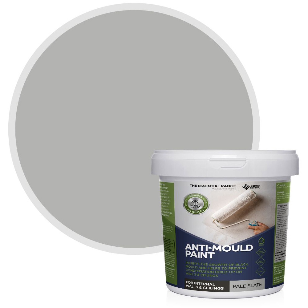 Defend walls against mould and moisture with this StoneCare4U Essential Walls & Ceilings Pale Slate Matt Anti Mould Paint. This heat-amended acrylic copolymer emulsion paint is suitable for internal use on walls and ceilings. The paint is ideal for use in places with black spot mould build-up, like kitchens, bathrooms and ceilings. It assists in reducing build-up and helps to inhibit any regrowth of black spot mould. Also, the paint can be used on internal surfaces of cold-facing walls or walls with low insulation levels. The formula contains tiny cenospheres, also known as ‘beads’, which raise the temperature of the surface, and once applied, help in reducing the development of condensation. Plus, an active fungicide is found in the formulation of the paint to prevent the accumulation of mould. Mould can affect human health and be extremely unpleasant appearance-wise. The damaging effect of black spot mould spores can be especially harmful to asthma patients or people with breathing issues. Directions for use: Stir thoroughly prior to use. Apply at least two coats of paint using a brush or roller. If you want to coat dark or strong colours, an additional coat may be required to disguise the original colour. Do not apply at air or surface temperatures below 10 °C or in areas of high humidity. Coverage: Approx 4 to 6m2 per litre per coat. Initial Drying Time: Around one to two hours. Re-coating: After two to four hours. Quantity: 2.5L.