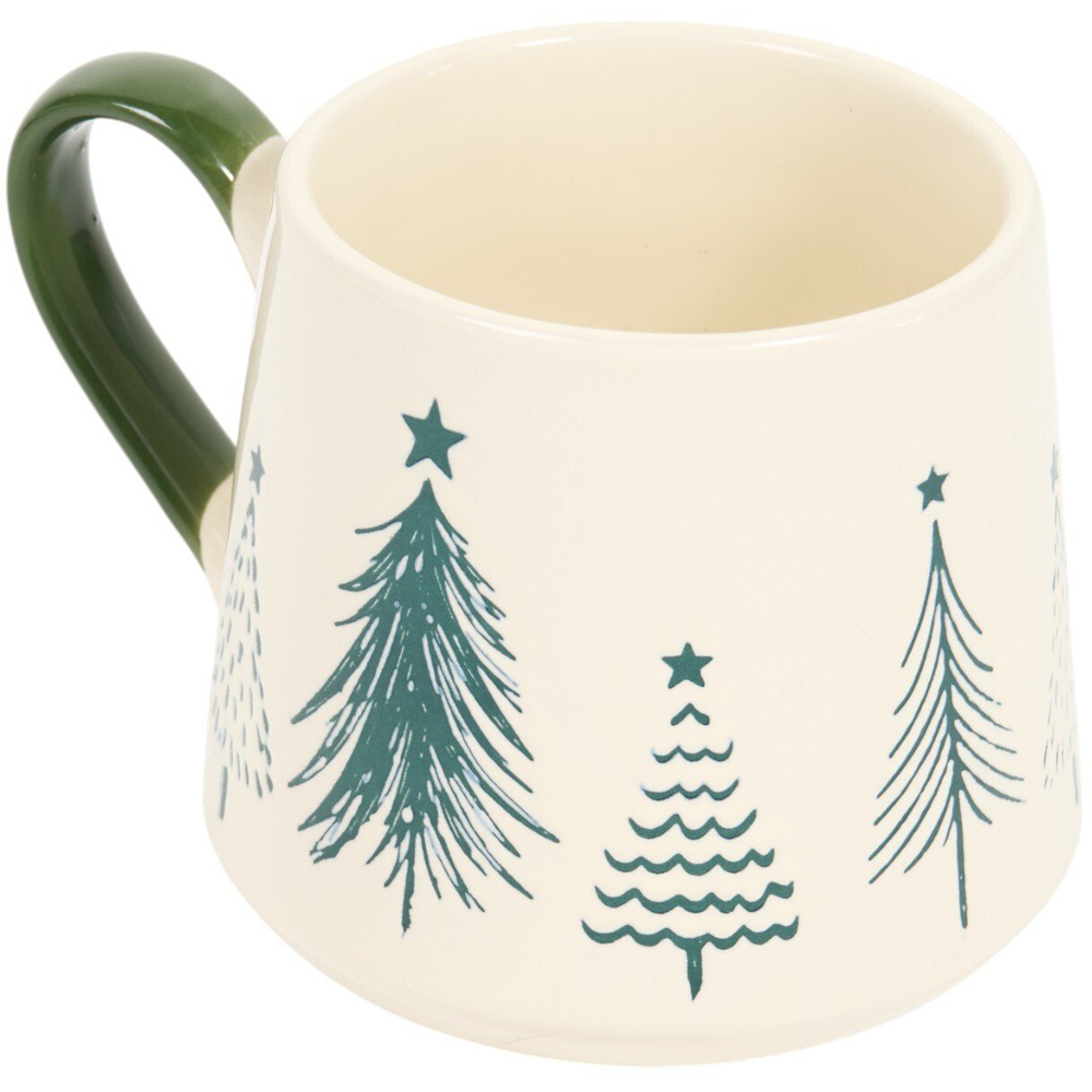 Bring a festive touch to your everyday drinks with this Stoneware Trees Mug. Featuring charming tree illustrations and a contrasting green handle, it combines seasonal style with everyday practicality. Made from stoneware, it is perfect for enjoying tea, coffee or hot chocolate throughout the holidays and beyond.