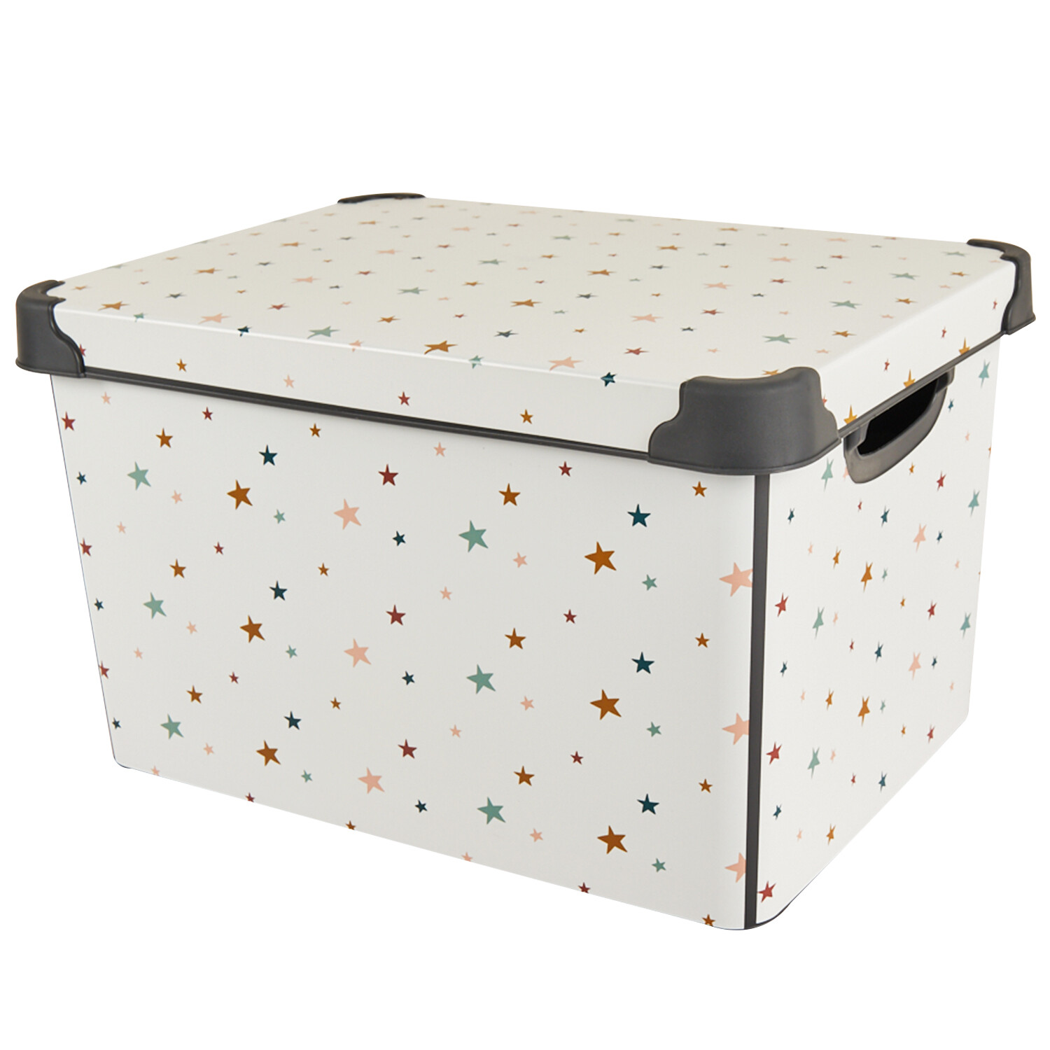 Keep your bits and bobs stored in one place with this 17L Star Pattern Storage Box. Offering a decent storage capacity, it's perfect for organizing your belongings neatly. Designed with a lid and carry handles, it offers an easy way to maximise your storage space.
