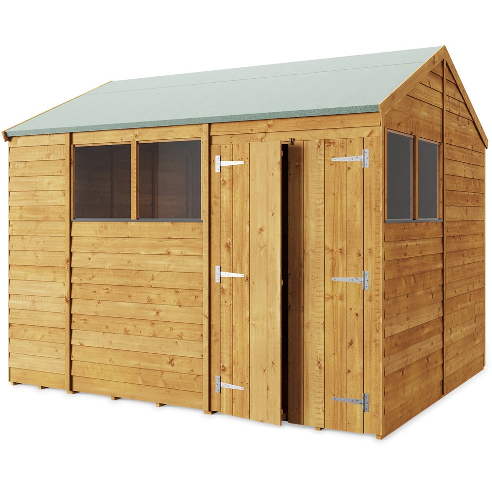 Maximise your outdoor space with this StoreMore Double Door Overlap Apex Shed with Window. Designed to be fully customisable, this shed adapts to most garden spaces and gives you control over where to place its doors and windows. Pressure-treated for sturdiness, this shed offers longevity and extra protection. Easy to access, the wide double doors make using the shed or moving around items hassle-free. Also, it comes complete with a floor, roof and felt. Size: 10 x 8ft.