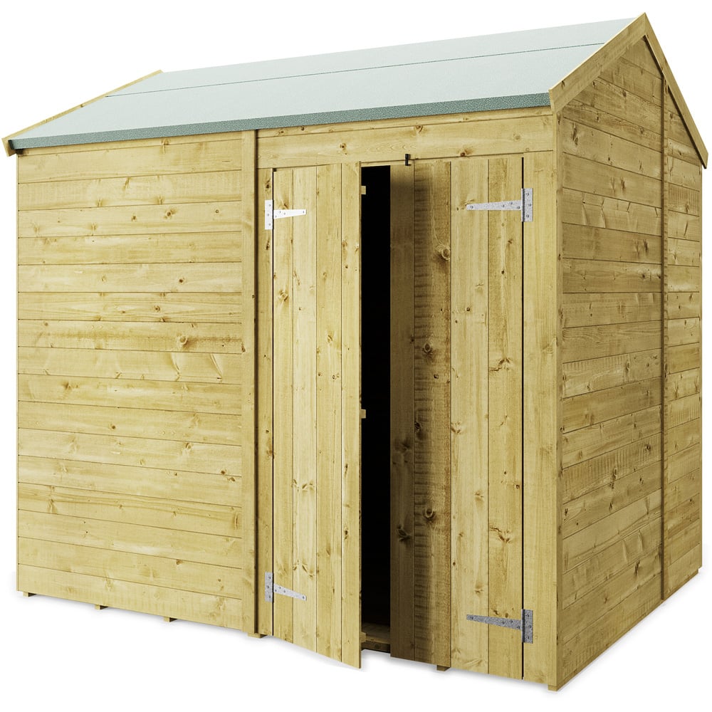 Maximise your outdoor space with this StoreMore Double Door Tongue and Groove Apex Shed. Designed to be fully customisable, this shed adapts to most garden spaces and gives you control over where to place its doors. Pressure-treated for sturdiness, this shed offers longevity and extra protection. Easy to access, the wide double doors make using the shed or moving around items hassle-free. Also, it comes complete with a floor, roof and felt. Size: 8 x 6ft.