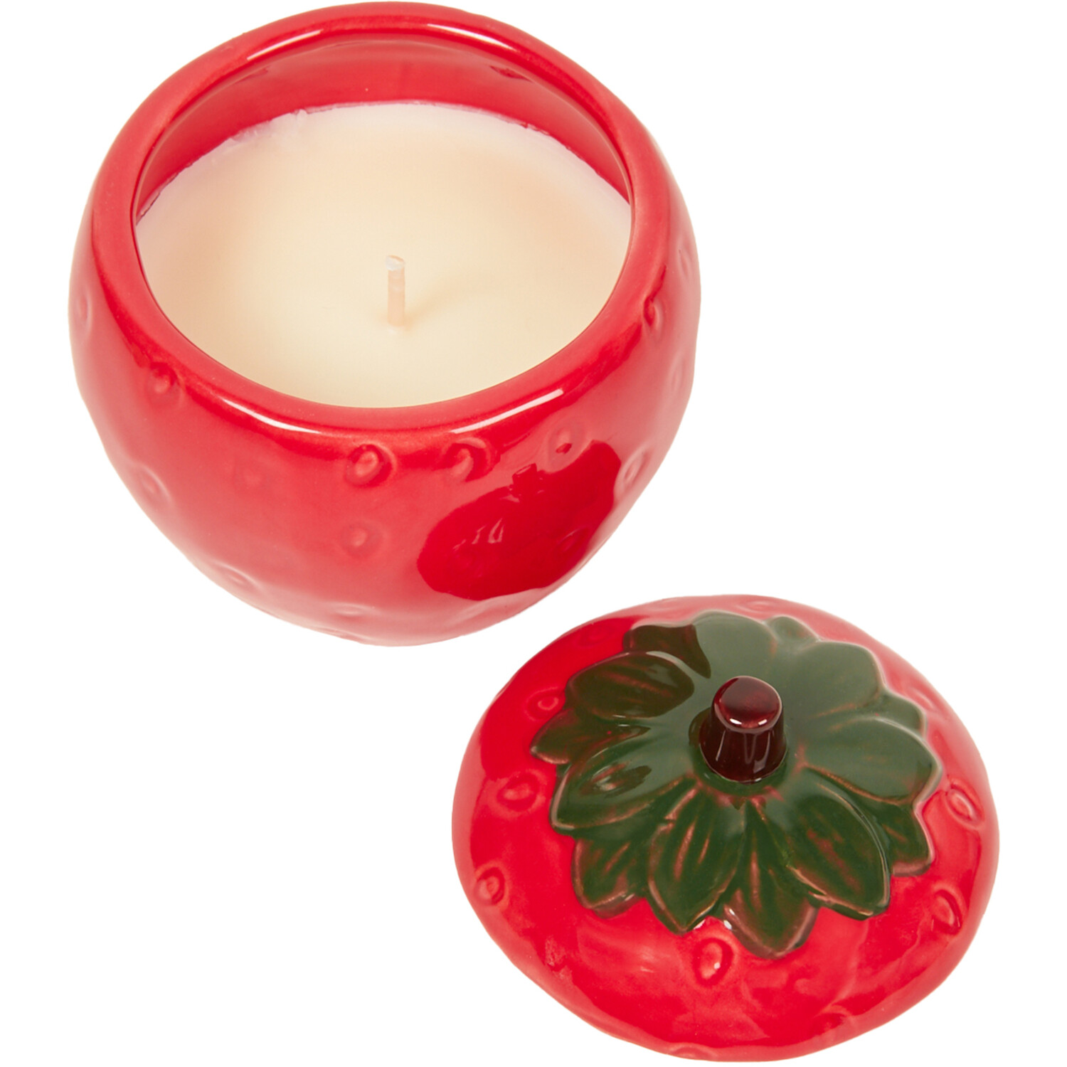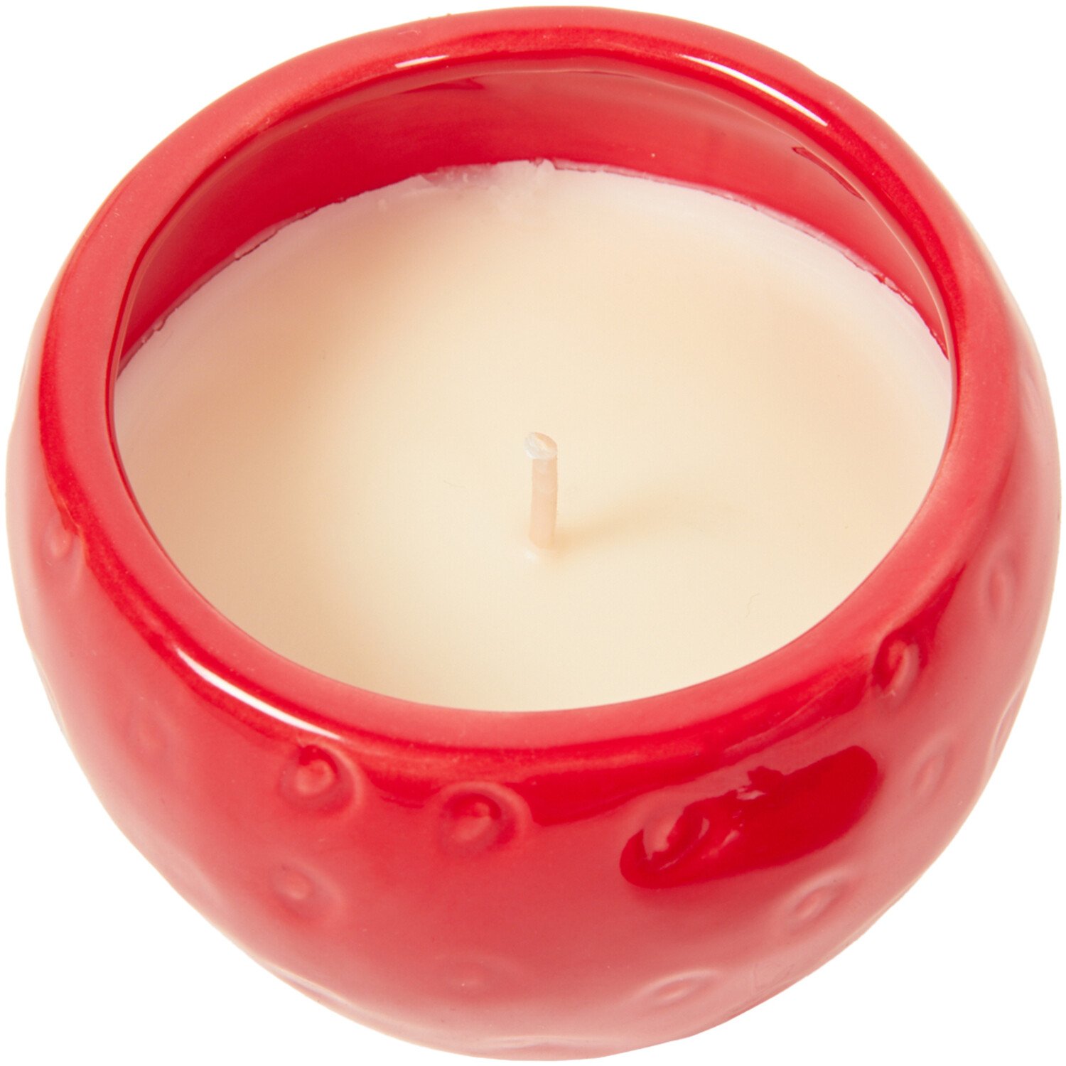 Create a calming ambience in any room with this Strawberry Ceramic Candle. This scented wax candle with three wicks comes in a strawberry-shaped ceramic base for a stylish look. Place it in just about any room to fill it with a fruity scent and a warm glow.