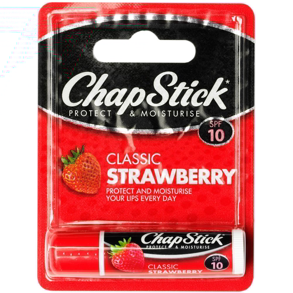 Keep your lips soft and smooth with this Strawberry Chapstick. The small stick is easy to carry with you for day to day use and will help your lips to stay moisturised and soft. The strawberry flavour is sweet on your lips and it's SPF 10 for additional sun protection.