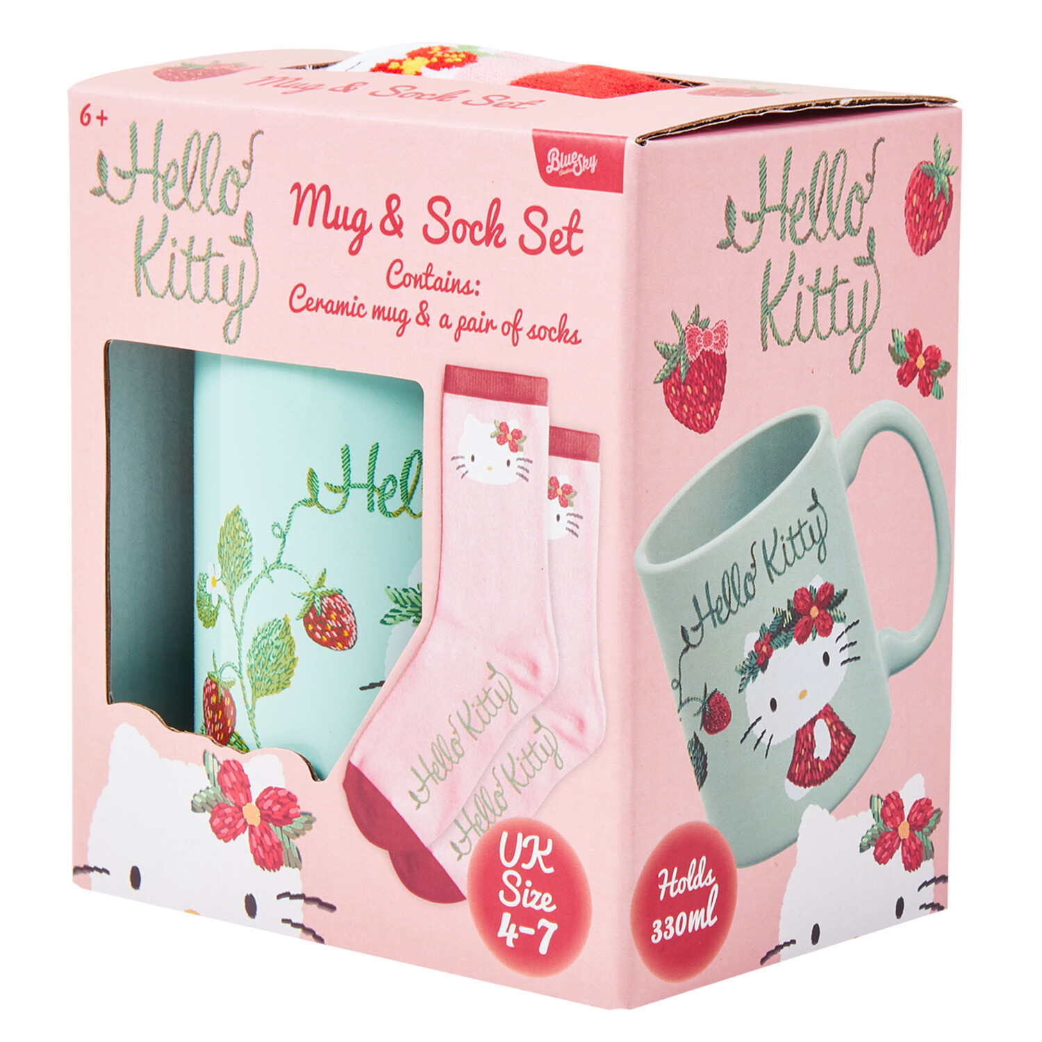 Sip in style and step in comfort with this Strawberry Hello Kitty Mug and Sock Set. A perfect gift for fans of the beloved character, this charming set includes a beautifully printed ceramic mug and cosy socks featuring a Hello Kitty design. Ideal for sipping on your favourite hot beverages while keeping your feet warm by wearing those cosy socks, this set is a must-have for those cold nights.