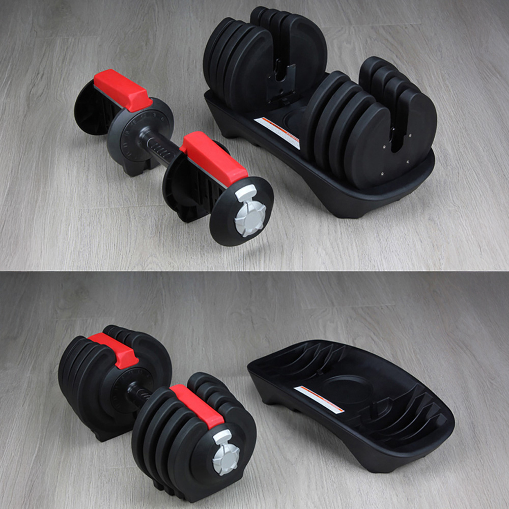 Save space and save money with 12 different weight settings on each dumbbell. No need to purchase an entire set of dumbbells anymore, and no need to worry about where to store all of your weights. The Strongology adjustable dumbbell takes care of that. Versatile in design, simply select the weight you want with a simple turn of a dial for a quick and easy weight changes. Each dumbbell adjusts from just 1.5kg to 18kg. Ideal for a series of exercises, with weights to target all muscles group workouts, ranging from small muscle workouts like Rotator Cuff Rotations, to compound exercises like Squats and Deadlifts. For ultimate safety and stability, the dumbbell chassis and plate lock together securely with a robustly engineered plate-locking mechanism, rotatable only once the dumbbell is returned to its dock. The contoured soft grip non-slip handle provides comfortable and secure grip control. Made from heavy-duty laser cut silicone steel that does not rust or fade. Strong mouldings encapsulate the durable plates to provide a smooth lift off and quieter workouts.