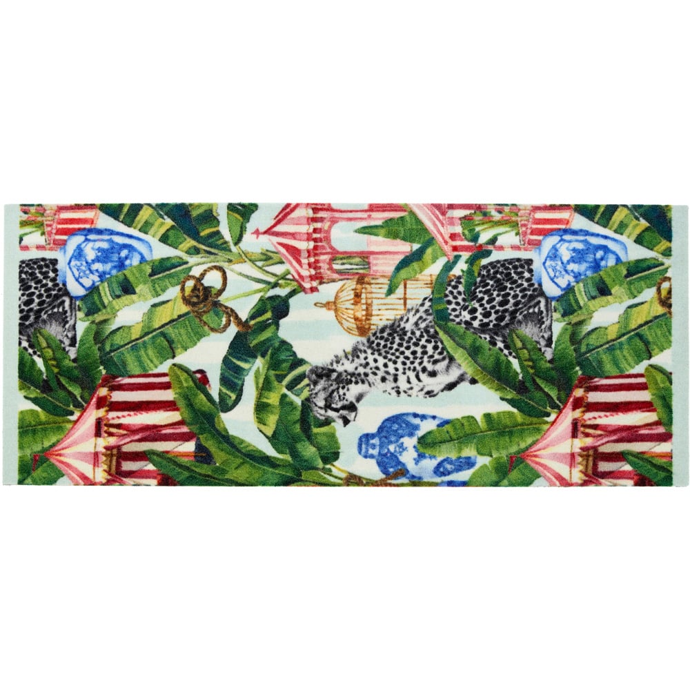Introducing the bright new designs, perfect for adding a splash of colour to your home this summer! The Lux Leopard design features a white leopard, amongst bright green banana leaves and colourful tents, creating a lively background. Add a colourful runner to your hallway, utility, or kitchen – it is super absorbent, stain resistant, non-slip and washable, making it the perfect runner for busy homes. Sustainably made with recycled content. Machine washable at 30 degrees. Hang or lie flat to dry. Tumble drying is not recommended.
