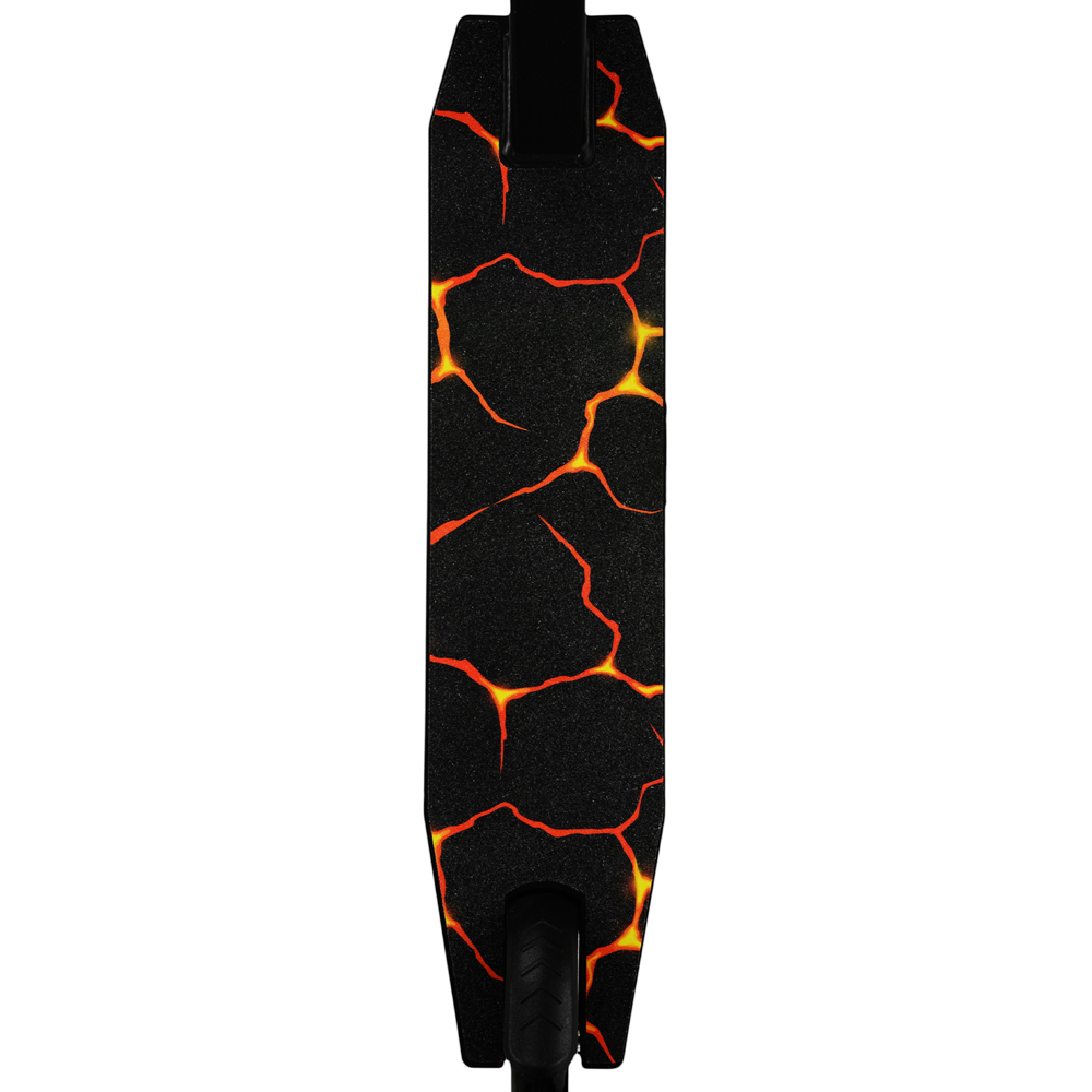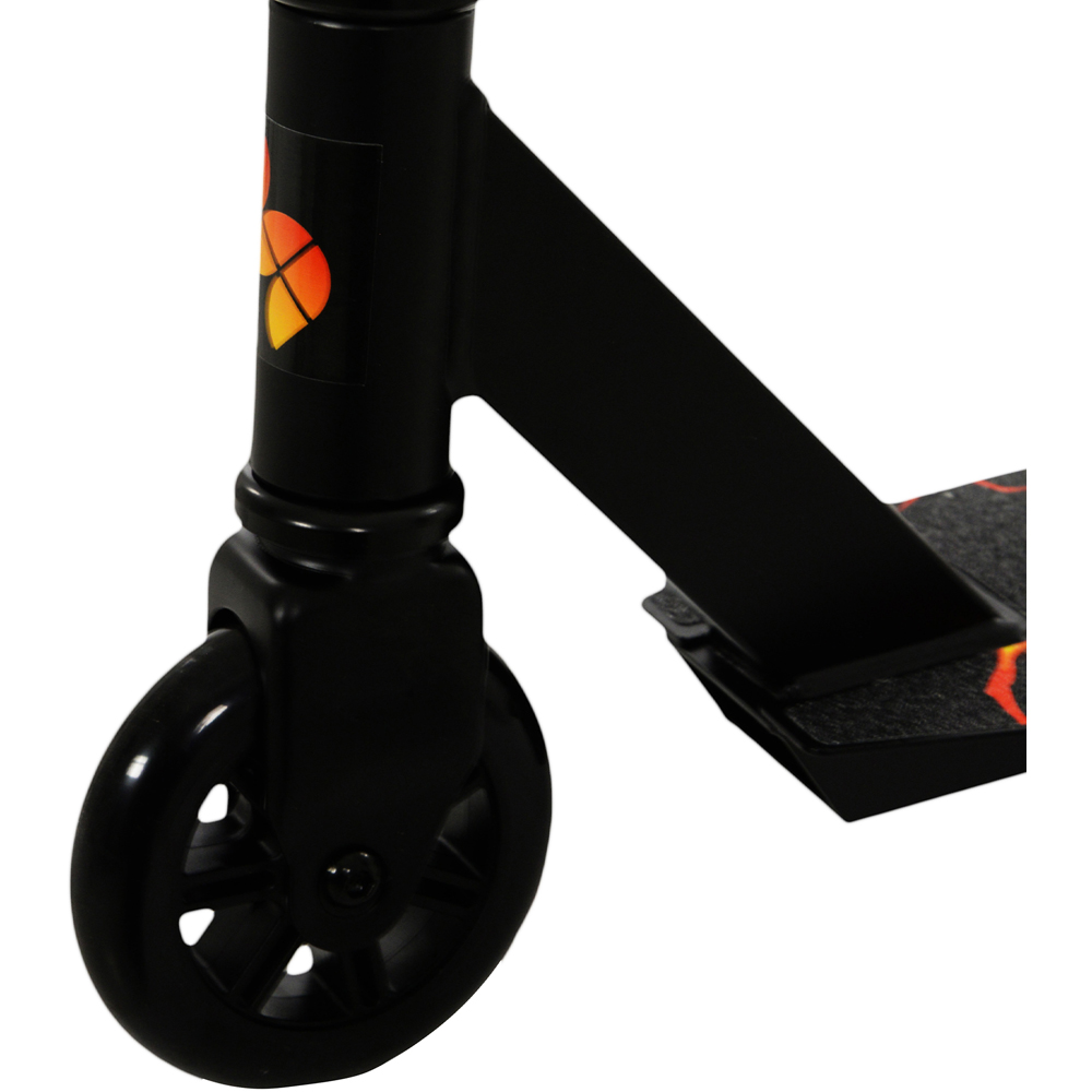 Enter the world of stunt scootering with the Stunted Vulcan stunt scooter! Featuring jet black components with contrasting hot orange components and funky lava design, this scooter is sure to stand out. This scooter is ideal for beginner riders and up and is flush with features to ensure the best ride with the highest quality! The single-piece design of the handlebar and stem, along with the pro-grade double clamp, ensures a solid steering base with moulded grips for comfort. The solid steel deck offers superb stability, great for beginners. To keep 360 degree tricks, steering and riding smooth (as well as fast), the scooter features a threaded headset and ABEC 7 wheel bearings. The tyres are constructed from a solid, puncture-proof PU cast with PC spoked cores to ensure excellent stability and streamlined performance. And when you need to stop, the reactive nylon flex rear footbrake will 'grind' you to a halt in a smooth and controlled manner.