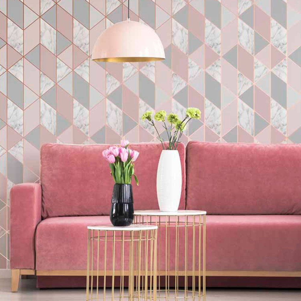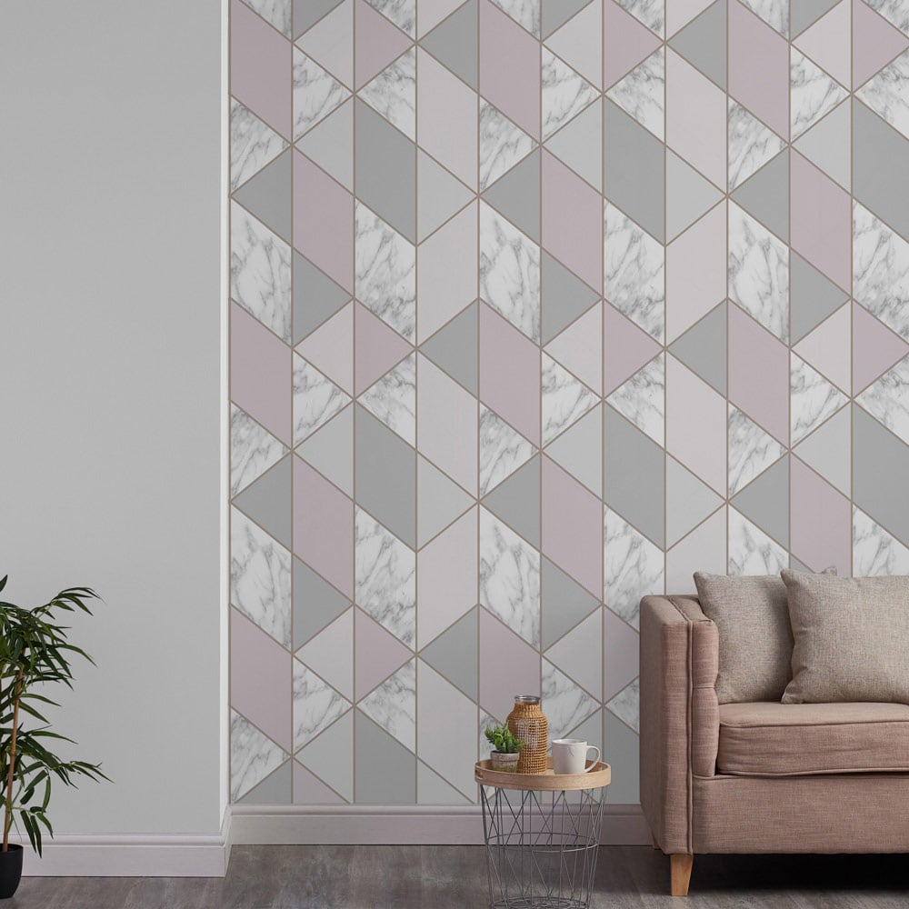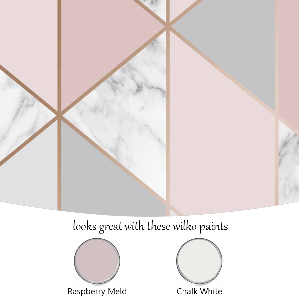 This sublime marble blush wallpaper is made up of beautiful contrasting sections of pink hues and marble effect. The design is perfect to achieve a modern, sleek and refined look in any room. Finished off with metallic foil strips, it provides a stylish and on trend look for your home. Perfect for a feature wall or hang on all four walls for that stand out addition to your home. Paste the paper. Washable. Design Match: Straight, Design Repeat: 64cm, Roll Length: 10m, Roll Width: 52cm
