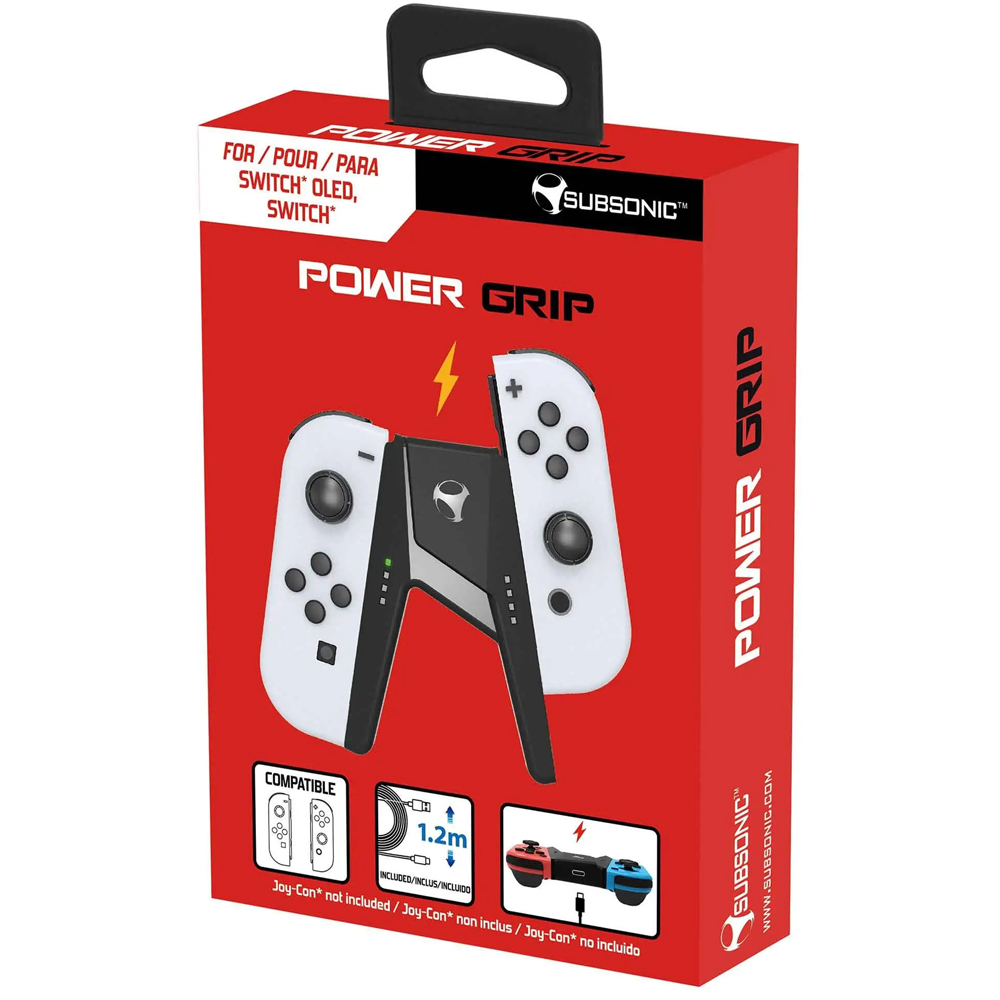 The Subsonic Power Grip Joy-Con holder is a versatile accessory that transforms your Joy-Cons into a comfortable game controller, perfect for enhancing your gaming experience on the Nintendo Switch. Its ergonomic design ensures a secure and comfortable grip, making it suitable for players of all ages, including children. Not only does the Power Grip provide a more comfortable gaming experience, but it also offers the convenience of recharging your Joy-Cons while you play. Simply connect the included USB cable to keep your controllers powered up and ready for extended gaming sessions. Say goodbye to interruptions due to low battery levels and enjoy uninterrupted gameplay with the Subsonic Power Grip Joy-Con holder. *Please note that the Joy-Con controllers shown in the images are for illustration purposes only and are NOT included.
