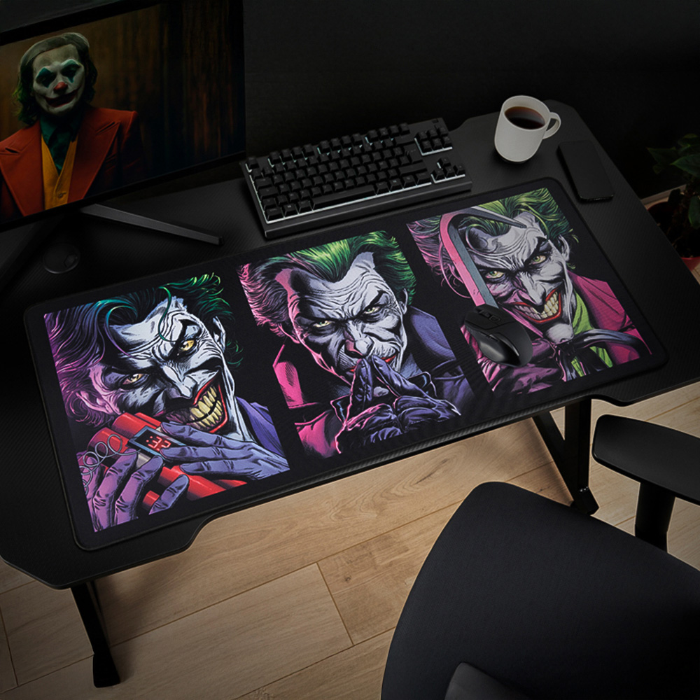 Immerse yourself in the captivating universe of The Joker with this Subsonic XXL officially licensed mouse pad, boasting an impressive size of 90cm x 40cm to provide ample space for all your gaming or work needs. Crafted with a thick 3mm foam padding, this mouse pad provides exceptional support for extended gaming or work sessions, ensuring comfort and reducing strain on your wrist and hand. The non-slip base guarantees stability, even during the most intense gaming moments, while the stitched edges enhance durability and prevent fraying. The micro-textured surface of the mouse pad offers precise tracking for both optical and laser mice, enabling gamers and creatives to execute swift movements with accuracy. Whether you're engaged in a fierce battle or working on intricate designs, this mouse pad enhances your performance by delivering a smooth and responsive surface for your mouse to glide on.