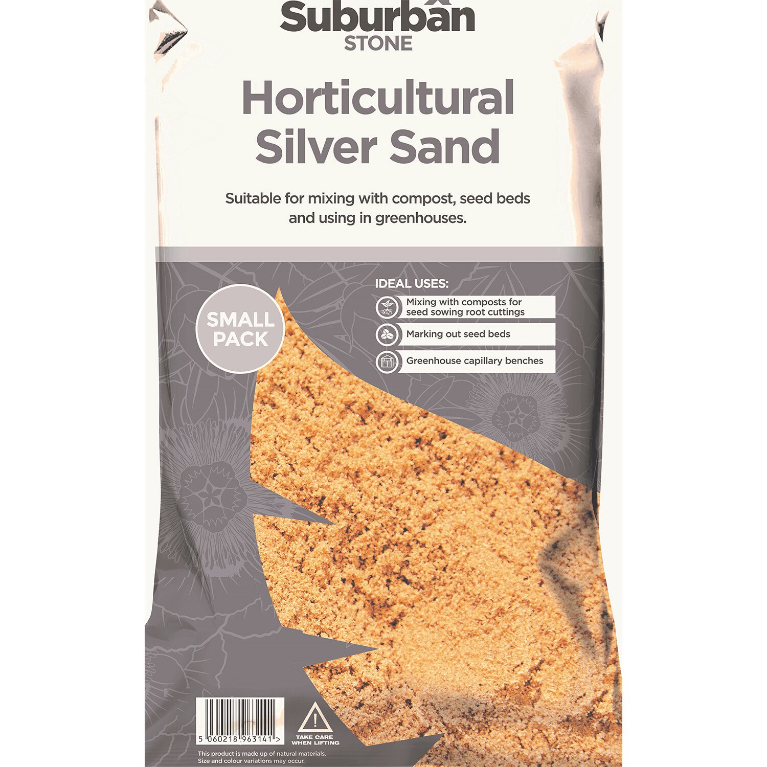 This bag of Suburban Stone Horticultural Silver Sand is amongst gardeners' favourites. It provides endless options for in and around the garden. Also, it is particularly ideal for improving soil aeration, top-dressing lawns, and improving drainage to reduce waterlogging. Plus, it can be used instantly without needing much effort or preparation. Size: 5kg approx.