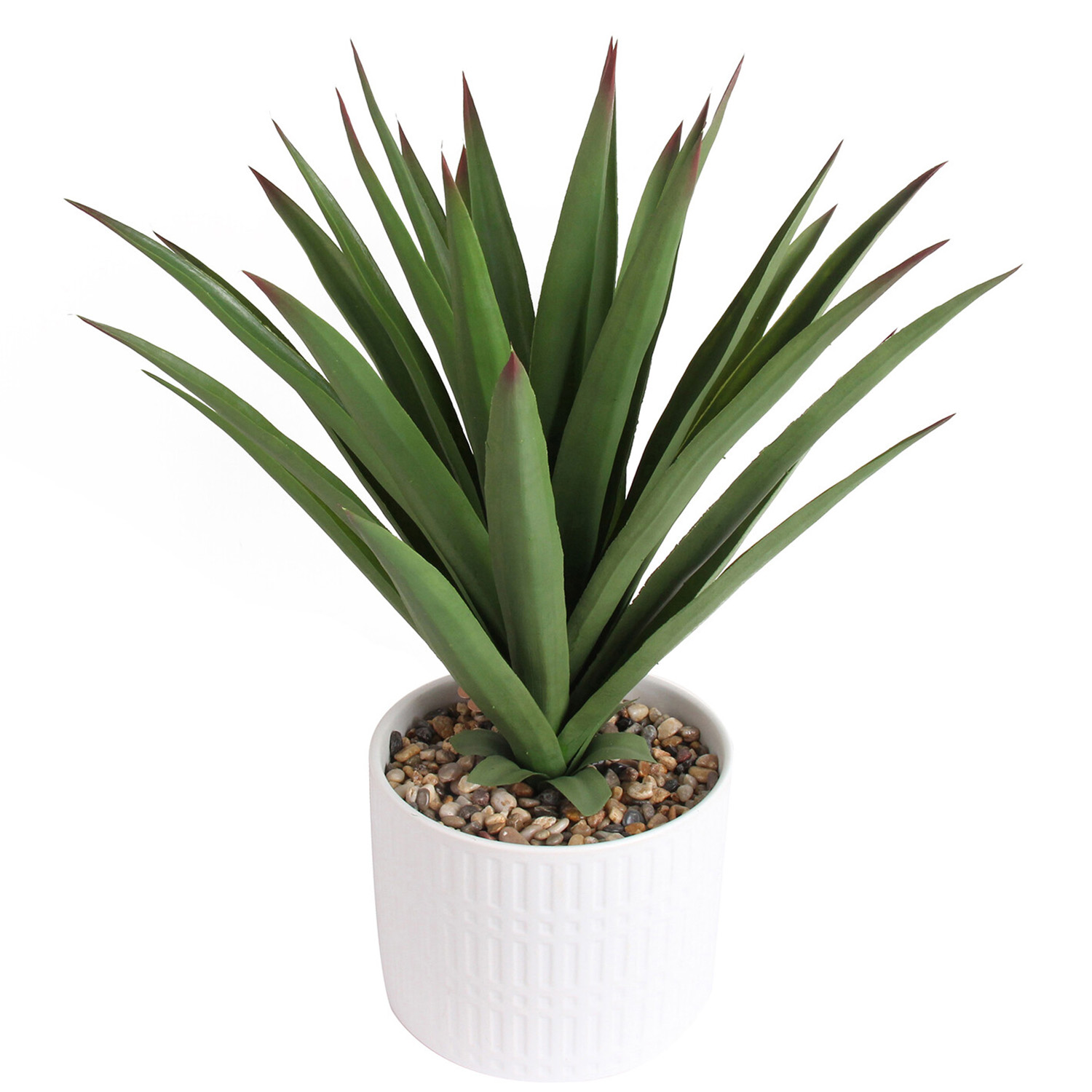 This Succulent with Ceramic Pot is a beautiful addition to your home, adding an elegant outdoor element to the indoors. Featuring realistic details on the leaves and gorgeous stone details, this faux succulent has a simple and stylish white pot that makes the perfect accent to any room or home decor style. Ideal for shelves, accent tables, or even the floor, it's versatile for anywhere that could do with a little lift!