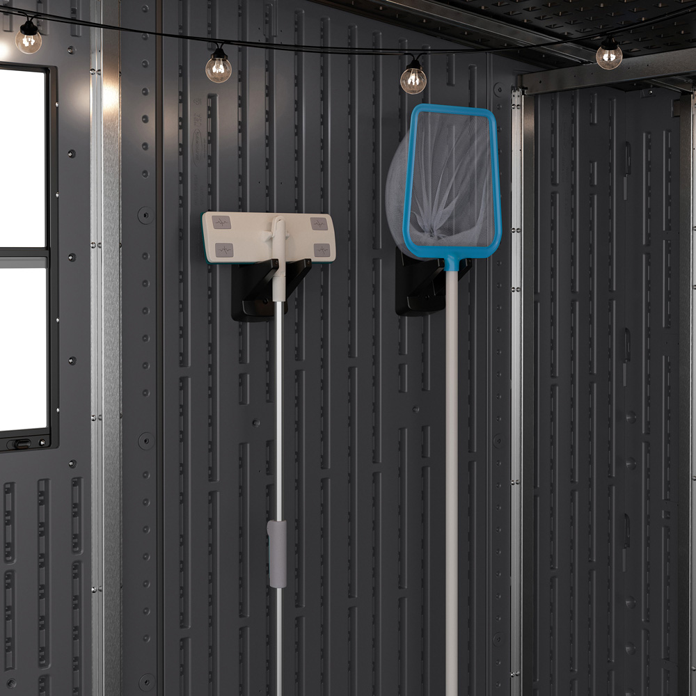 Long-handled tools can be tricky to deal with. That’s why the Suncast Single Tool Hook Hanger is the perfect solution for storing all your long-handled tools, even if you have limited space on your shed walls. Each hanger can store multiple tools to maximize space and prevent tools from falling onto the floor. Keep your tools up and out of the way, but still easily accessible with the Single Tool Hook Hanger.