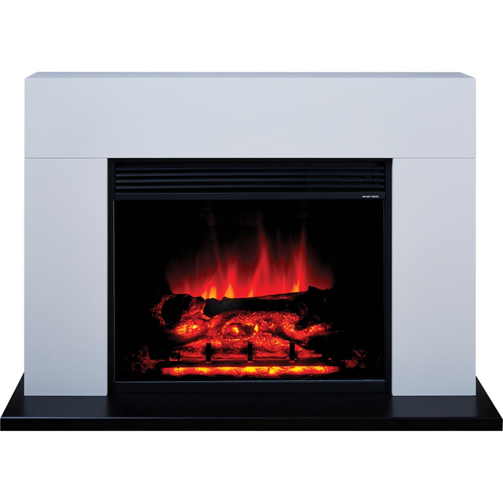 With its textured white finish against the contrasting black hearth, the Suncrest Lindale White and Black Textured Electric Suite is a modern fireplace with a sleek, straight line. The energy-efficient LED flame effect, with 3 flame settings, realistically flickers glows and illuminates the glowing log bed beneath. If you want the flames without the heat, no problem – the flame effect-only setting will ensure you can sit back and enjoy the flames gently flickering without the heat. Supplied with a smart remote control, the electric fire produces up to 2kW of heat and features the latest EcoDesign energy-saving technology – a 7-day programmable timer, draught detection, adaptive start operation and meets EcoDesign standards. It is a flat-to-wall fireplace, does not require a chimney breast, comes fully assembled and is covered with a 1-year warranty.