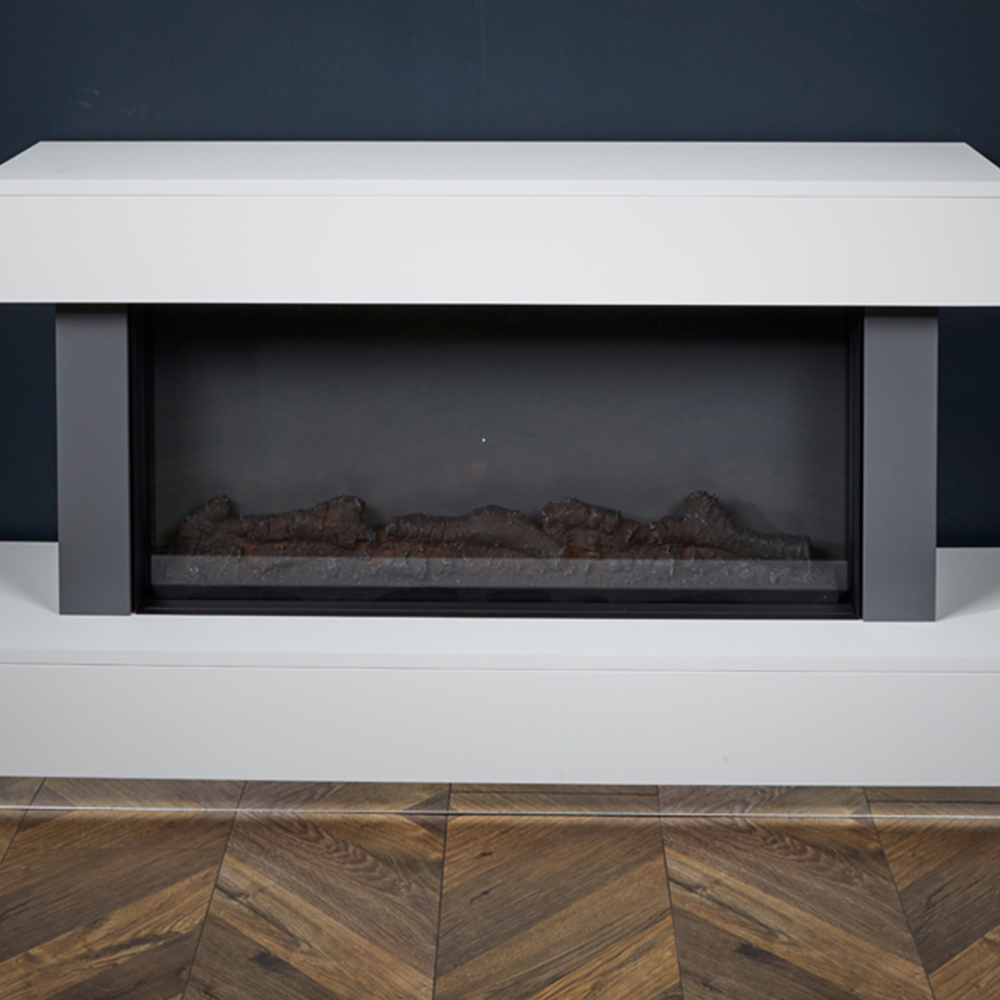 The Suncrest Madison White and Grey Textured Electric Suite is a stylish, low-level electric fireplace finished in textured white – perfect for mounting a television above. If you want the flames without the heat, no problem – the flame effect-only setting will ensure you can sit back and enjoy the flames gently flickering without the heat. The energy-efficient LED flame effect, with 3 flame settings, realistically flickers and glows and illuminates the glowing log bed beneath. 13 different ambient mood lighting colour settings give you even more control. Supplied with a smart remote control, the electric fire produces up to 2kW of heat and features the latest EcoDesign energy-saving technology – a 7-day programmable timer, draught detection, adaptive start operation and meets EcoDesign standards. It is a flat-to-wall fireplace, does not require a chimney breast, comes fully assembled and is covered with a 1-year warranty.