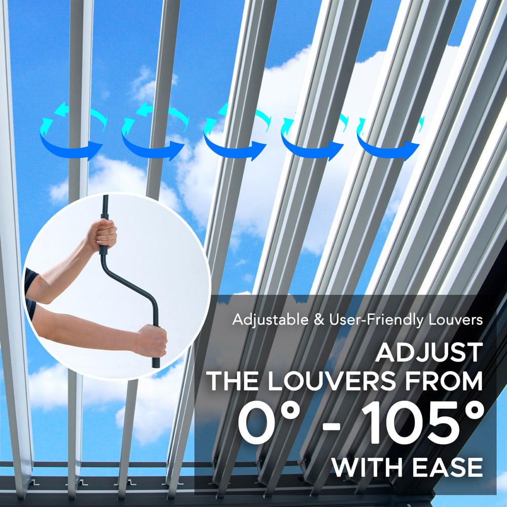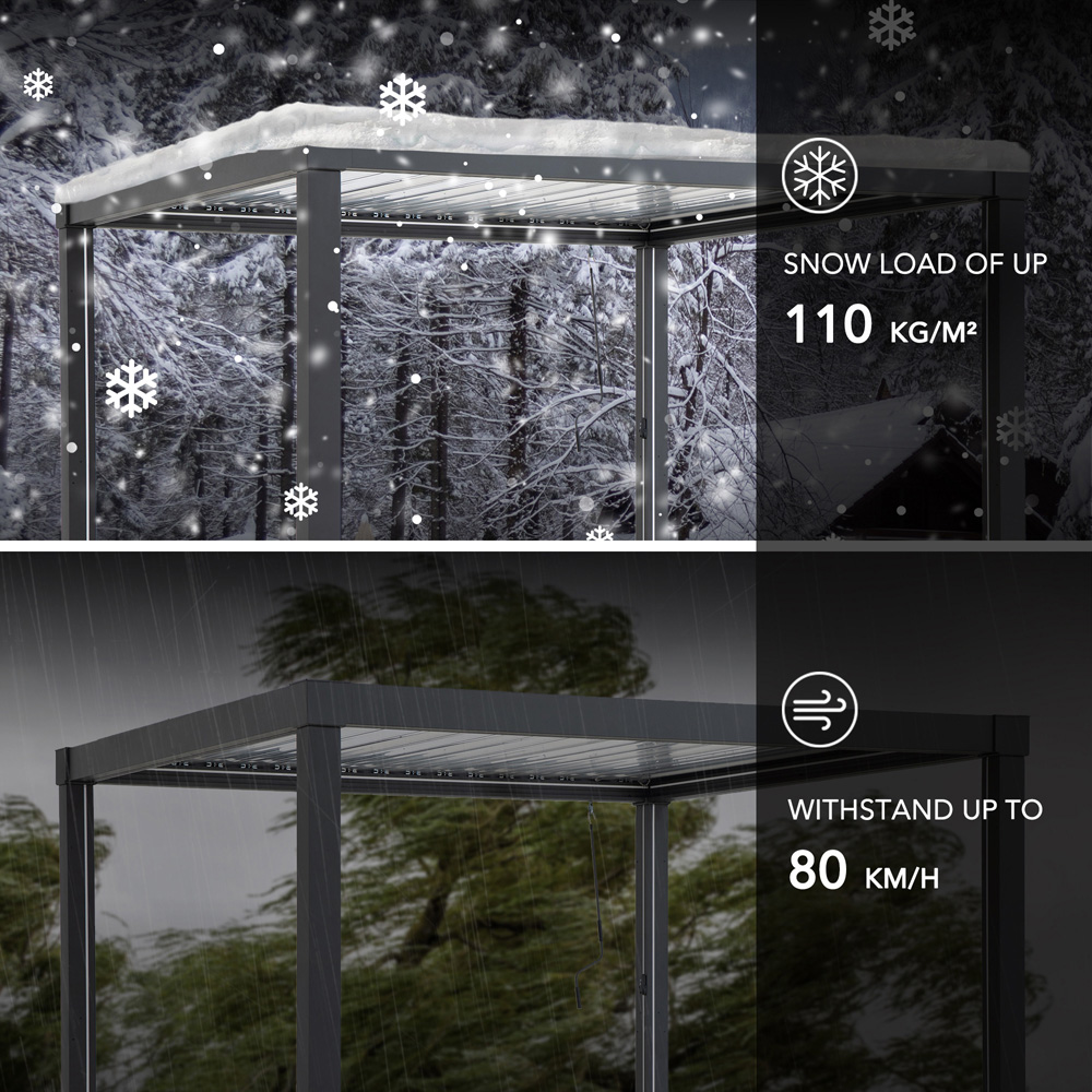 Have you ever wanted to relax outside in your backyard, but it was too hot in the direct sun to enjoy being outside? This Sunjoy 3 x 3m outdoor aluminium louvred pergola is your answer. Finished in an anthracite colour, the high-end adjustable louvred roof is made of an aluminium structure with adjustable insulated aluminium panels that offer outstanding comfort in cold and hot seasons. The louvred pergola roof design makes it adjustable with an angle of 0° to 105° to withstand greater snow loads and strong winds. It is a great addition to your patio, deck, or backyard all year round. With straightforward, easy-to-follow assembly instructions, you’ll be relaxing in your favourite new outdoor living space in no time.